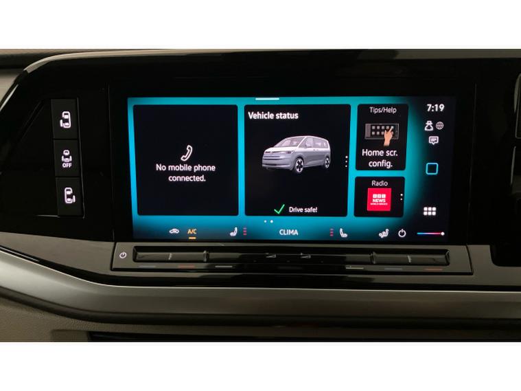 The Multivan TDI Life ensures you stay connected and informed with its Discover Pro navigation system, featuring Android Auto and Apple CarPlay integration, alongside a mobile phone interface with Bluetooth connectivity. Bright LED main headlamps with separate daytime running lights provide excellent visibility. This model also boasts a generous boot space, making it ideal for carrying luggage, shopping, or equipment, setting it apart from other vehicles in its class.