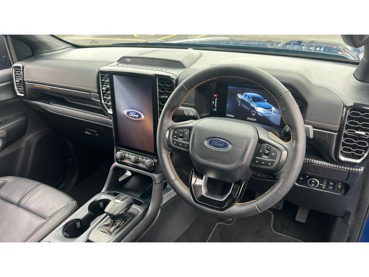 Ford Ranger Diesel Pick Up Double Cab Wildtrak 2.0 EcoBlue 205 Auto, , This stunning all new ranger looks awesome in metallic plue, it comes with tech pack 68 which gives you blind spot monitoring, 360 cameras and a tow pack and also comes with a powered roll cover. Part of Fords luxury models, the wildtrak delivers superior levels of sophistication and comfort, with premium materials, additional technologies and unique styling elements. Including Sports Body Styling, Full Leather, Heated seats, LED Lights, 18 Alloys, Sync 4 with 12 Touchscreen and Navigation that can also wirelessly link with Apple Carplay/Android Auto, Adaptive Cruise Control, Auto Lights, Rain Sensing Wipers, Rear View camera with front and rear sensors. These are just some of the fantastic features you get. The selectable drive modes of Normal, Eco, and Slippery modes help give the Ranger go-anywhere capability. But Tow Haul mode gives the Ranger tow-almost-anything capability. Up to 3, 500 kg can be managed with ease, as the system optimises gearshift timing for best power delivery and engine braking. There is also the Terrain Management system for wherever your sense of adventure takes you, Ranger is ready for what lies ahead. This system adjusts the engine calibration response, transmission and vehicle control systems for various terrains and conditions. The four modes you can choose from include Normal, Slippery, Mud & Ruts, and Sand.