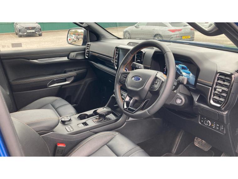 Ford Ranger Diesel Pick Up D/Cab Wildtrak 3.0 EcoBlue V6 240 Auto, , Ex-Demonstrator: This Ranger Wildtrak looks awesome in Blue Lightning, it comes with a power roller shutter, tow pack, and the brilliant 2.3 PHEV engine! Part of Ford's luxury models, the Wildtrak delivers superior levels of sophistication and comfort, with premium materials, additional technologies and unique styling elements. Including Sports Body Styling, Full Leather, Heated seats, LED Lights, Sync 4 with 12 Touchscreen and Navigation that can also wirelessly link with Apple Carplay/Android Auto, Adaptive Cruise Control, Auto Lights, Rain Sensing Wipers, Rear View camera with front and rear sensors. These are just some of the fantastic features you get. The selectable drive modes of Normal, Eco, and Slippery modes help give the Ranger go-anywhere capability. But Tow Haul mode gives the Ranger tow-almost-anything capability. Up to 2, 000 kg can be managed with ease, as the system optimises gearshift timing for best power delivery and engine braking. There is also the Terrain Management system for wherever your sense of adventure takes you, Ranger is ready for what lies ahead. This system adjusts the engine calibration response, transmission and vehicle control systems for various terrains and conditions. The four modes you can choose from include Normal, Slippery, Mud & Ruts, and Sand.