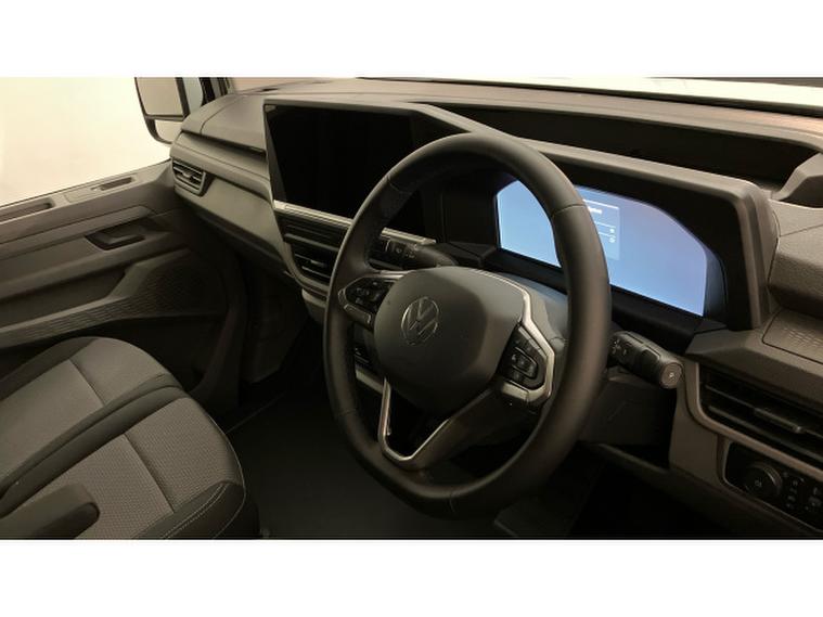 Volkswagen Transporter T32 Swb Electric 160kW 65kWh Commerce Pro Van Auto, , This 2025 Volkswagen e-Transporter is a remarkable find, having had only one owner since new. This electric panel van, a T32 Commerce Pro derivative, boasts a powerful 215 bhp electric motor and a substantial 83 kWh battery, offering a maximum range of 192 miles when new. It features a comfortable Transporter Cab with a 3 seat package including heated seats, and a single zone automatic climate control system for the cab. Convenience is enhanced with wireless mobile phone charging and a Parking Package Premium, which includes adaptive cruise control and a rear camera. The vehicle is also equipped with LED headlights and separate LED daytime running lights for improved visibility.
