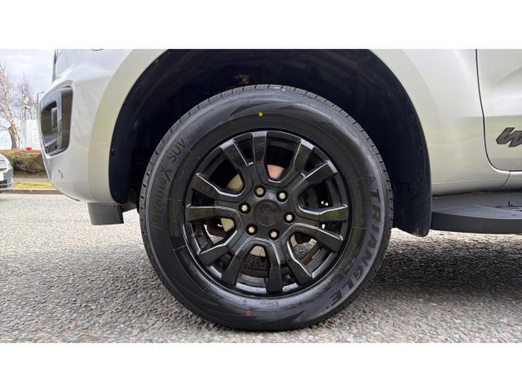 The Wildtrak specification includes sat nav, leather interior, heated front seats, cruise control, parking sensors, reversing camera, DAB Bluetooth, Apple CarPlay/Android Auto, and alloy wheels.