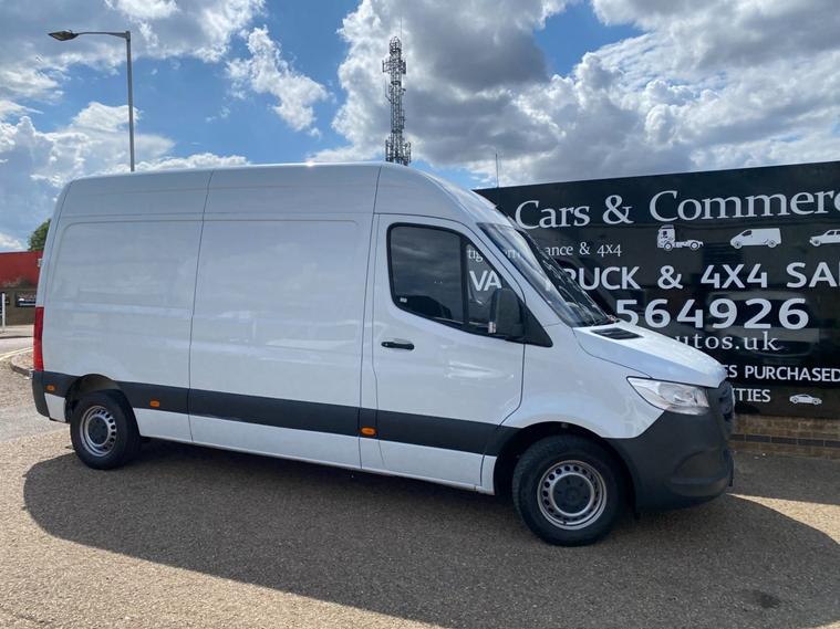 2019 19 REG COVERED 120467 MILES. LOVELY EXAMPLE 3.5 TONNE MWB L2H2 EURO 6 ULEZ+LEZ COMPLIANT LEGENDARY SPRINTER NEW SHAPE MODEL MWB MEDIUM WHEEL BASE HI ROOF PANEL VAN. 2.1 CDI 143 BHP TURBO DIESEL ENGINE WITH 6 SPEED GEARBOX FRONT WHEEL DRIVE. COMPANY OWNED FROM NEW WITH FULL MERCEDES MAIN VAN DEALER SERVICE HISTORY. SUPERBLY MAINTAINED+LOOKED AFTER. DRIVES BEAUTIFULLY. CURRENT MOT VALID TILL 01/04/2026 WITH NO ADVISORIES. FULL 12 MONTHS MOT UPON SALE FOR COMPLETE PEACE OF MIND. JUST BEEN SERVICED ALL UP TO DATE WITH GENUINE MERCEDES FILTERS AND OIL. 6 MONTHS NATIONWIDE PARTS AND LABOUR WARRANTY. TOWBAR AND ELECTRICS WITH TWIN STEP PLATES. REAR RACKING SHELVING UNITS AND FOLD DOWN TABLE BENCH (CAN BE REMOVED BY US IF REQUIRED). AIR CON CLIMATE CONTROL. HEAVY DUTY FACTORY SUSPENSION. REAR DOORS WRAPAROUND OPENING. PLYLINED REAR WITH FACTORY WOOD FLOOR. CRUISE CONTROL. DRIVERS ARMREST. ARMAPLATE SECURITY PLATES TO LOADING DOORS. INTELLIGENT PHONE LINK. APPLE/ANDROID CAR PLAY PHONE CONNECT. BLUETOOTH TELEPHONE AND AUDIO INTEGRATION. VOICE CONTROL COMMAND SYSTEM. 7 INCH MULTI MEDIA TOUCH SCREEN. LIVE TRAFFIC INFORMATION. COMMUNICATIONS MODULE. DAB DIGITAL RADIO. USB AUX IN MUSIC MEDIA CONNECT. MB CONNECT. EMERGENCY CALL SYSTEM. LOCKING GLOVEBOX. INTERIOR LIGHTING PACK. ATTENTION ASSIST. HEADLIGHT ASSIST. ACTIVE BRAKE ASSIST. THEFT PROTECTION PACKAGE. DOUBLE LOCKING. BLUETOOTH TELEPHONE+AUDIO INTEGRATION. USB AUX IN MUSIC INTERFACE. DAYTIME RUNNING LIGHTS. ADAPTIVE BRAKE LIGHTS. STANDARD ROAD TAX BAND 12 MONTHS PRICED 345 POUNDS. SUPERB ECONOMY 31/35/38 MPG OFFICIAL FUEL ECONOMY FIGURES WHEN NEW. SUPERB ECONOMY, BEST IN CLASS. HILL START ASSIST. CROSSWIND ASSIST. SHIFT POINT INDICATOR. OVERHEAD STORAGE SHELVING TO CAB AND OVERCAB STORAGE. UNDERSEAT STORAGE. 3 SEATER CAB. CUP HOLDERS. SIDE MARKER LIGHTS. 3500KG GROSS VEHICLE WEIGHT. 2211KG UNLADEN WEIGHT. 1289KG PAYLOAD CAPACITY. 2000KG TRAILER PULL CAPACITY. Bluetooth connection, PAS, Service indicator, Steering wheel mounted controls, Trip computer, Auxiliary input socket, Mobile phone App interface, OEM sound system, USB/iPod interface, Front electric windows, Front head restraints, Solid Paint, ABS, Drivers airbag, ESP, Traction control, Alarm, Immobiliser, Remote central locking, Cloth seat trim. SUPERB VALUE FOR MONEY LOVELY CONDITION VAN WITH RARE AIR CON. DRIVES BEAUTIFULLY. CHOICE OF 4 SISTER VEHICLES IN SAME SPEC IN STOCK NOW. MANY MANY MORE PICTURES ON DEALER WEBSITE. CHOICE OF HAND PICKED QUALITY USED VANS IN STOCK NOW. CHOICE OF MERCEDES SPRINTERS ALWAYS IN STOCK. CHOICE OF PANEL VANS, CREW CABS, TIPPERS, DROPSIDES, LUTONS ALL IN STOCK NOW. FINANCE ARRANGED AT MARKET LEADING RATES. NATIONWIDE DELIVERY SERVICE AVAILABLE. ALL DEALER FACILITIES. FULL PERSONALISED VIDEOS AVAILABLE. CONTACTLESS VIEWING & PURCHASING AVAILABLE. FOR ALL ENQUIRIES PLEASE CALL JIMMY ON 01733604129 / 01733604129. FOR MORE PICTURES PLEASE VISIT DEALER WEBSITE. SPECIALIST SUPPLIER OF PRESTIGE, PERFORMANCE & 4X4's. HONEST FRIENDLY & PROFESSIONALLY RUN FAMILY BUSINESS. 3 GENERATIONS OF EXPERIENCE. GENUINE 5 STAR SERVICE & REVIEWS TO REFLECT. BUY WITH CONFIDENCE. GOOD OLD FASHIONED NO NONSENSE CUSTOMER FIRST APPROACH.