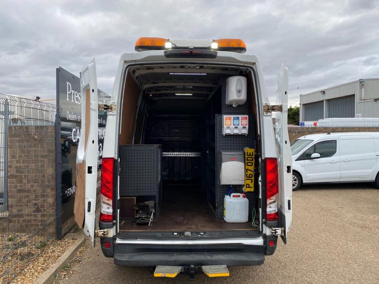 2017 67 REG IVECO DAILY 35-120 35S12V MWB HI ROOF PANEL VAN COVERED 99000 GENUINE WARRANTED MILES. 2.3 DIESEL 115 BHP ENGINE WITH 6 SPEED MANUAL GEARBOX REAR WHEEL DRIVE. 3.15 METRE LOAD AREA LENGTH. 3520MM WHEELBASE. MASSIVE 3500 KG TRAILER PULL CAPACITY. REAR ROOF BAR AMBER FLASHING ROOF LIGHT, REAR BUMPER STEP. TOWBAR AND ELECTRICS. PLYLINED IN REAR WITH WOOD FLOORING. REAR RACKING SHELVING STORAGE DRAWERS WITH BENCH AND RETRACTING VICE. REAR LOAD AREA LED LIGHTING. SINK HANDWASH BASIN UNIT. DRIVES SUPERB. 2 COMPANY OWNERS FROM NEW WITH FULL SERVICE HISTORY. SUPERBLY MAINTAINED AND LOOKED AFTER. FULL MAINTENANCE PRINT OUT ITEMISING EVERY ITEM OF SERVICE AND MAINTENANCE THATS EVER BEEN CARRIED OUT ON THE VAN. MAINTAINED WITH NO EXPENSE SPARED. CURRENT MOT VALID TILL 01/06/2026. JUST BEEN SERVICED AT 98103 MILES ON 13/05/2025. 6 MONTHS NATIONWIDE PARTS AND LABOUR WARRANTY. EURO6 ULEZ LEZ CLEAN AIR ZONE COMPLIANT. STANDARD VAN TAX BAND 12 MONTHS PRICED 345 POUNDS. CD RADIO MP3 PLAYER WITH AUX IN USB MUSIC MEDIA CONNECT. BLUETOOTH TELEPHONE AND AUDIO CONNECTIVITY. TWIN USB & 12V POWER CONNECTIONS IN CAB. FULL SIZE BULKHEAD WITH OVERHEAD STORAGE TO CAB AREA. UNDERSEAT STORAGE. REVERSE BEEPER SWITCHABLE. 3500 KG GROSS VEHICLE WEIGHT. 7 TONNE TRAIN WEIGHT. 1311KG PAYLOAD CAPACITY. 2189KG UNLADEN WEIGHT. 3500KG TRAILER PULL CAPACITY. 7 TONNE TRAIN WEIGHT. CHOICE OF QUALITY USED HAND PICKED COMMERCIALS IN STOCK NOW. CHOICE OF PANEL VANS, TIPPERS, DROPSIDES, LUTONS, PICK UP'S, CREW CABS, SINGLE CABS ALL IN STOCK NOW. FOR MORE PICTURES AND TO VIEW FULL STOCKLIST PLEASE VISIT DEALER WEBSITE. FINANCE ARRANGED AT MARKET LEADING RATES. NATIONWIDE DELIVERY SERVICE AVAILABLE. ALL DEALER FACILITIES. FULL PERSONALISED VIDEOS AVAILABLE. CONTACTLESS VIEWING & PURCHASING AVAILABLE. FOR ALL ENQUIRIES PLEASE CALL JIMMY ON 01733604129 / 01733604129. FOR MORE PICTURES PLEASE VISIT DEALER WEBSITE. SPECIALIST SUPPLIER OF PRESTIGE, PERFORMANCE & 4X4's. HONEST FRIENDLY & PROFESSIONALLY RUN FAMILY BUSINESS. 3 GENERATIONS OF EXPERIENCE. GENUINE 5 STAR SERVICE & REVIEWS TO REFLECT. BUY WITH CONFIDENCE. GOOD OLD FASHIONED NO NONSENSE CUSTOMER FIRST APPROACH. FOR FULL STOCKLIST PLEASE VISIT DEALER WEBSITE., GOOD OLD FASHIONED NO NONSENSE CUSTOMER FIRST APPROACH