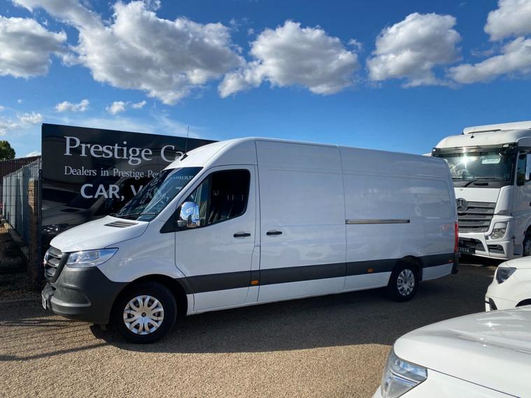 2019 68 REG LEGENDARY MERCEDES SPRINTER LWB LONG WHEEL BASE HI ROOF PANEL VAN COVERED 124311 GENUINE MILES. 2.1 CDI 143 BHP TURBO DIESEL WITH 6 SPEED GEARBOX REAR WHEEL DRIVE. 1 LAUNDRY COMPANY OWNER FROM NEW WITH FULL MERCEDES MAIN VAN DEALER SERVICE HISTORY. ONLY BEEN USED TO TRANSPORT COMMERCIAL LINENS SO NOT HAD HARD LIFE. PLASTIC LINED AND INSULATED REAR LOAD AREA WITH FULLY SEALED FLOOR. VERY WELL LOOKED AFTER HENCE DRIVES SUPERB. 6 MONTHS NATIONWIDE PARTS AND LABOUR WARRANTY ALL INCLUDED IN THE PRICE. CURRENT MOT VALID TILL 12/02/2026, FULL 12 MONTHS MOT UPON SALE ALONG WITH FULL SERVICE USING GENUINE MERCEDES FILTERS AND OIL. FACTORY FITTED FULL COLOUR REAR VIEW CAMERA. REAR SAFE-T BAR STEP. CRUISE CONTROL. ACTIVE BRAKE ASSIST. DAB DIGITAL RADIO. ANTI THEFT DOUBLE LOCKING. BLUETOOTH TELEPHONE+AUDIO INTEGRATION. USB AUX IN MUSIC INTERFACE. DAYTIME RUNNING LIGHTS. ADAPTIVE BRAKE LIGHTS. STANDARD ROAD TAX BAND 12 MONTHS PRICED 345 POUNDS. 2000 KG TRAILER PULL CAPACITY. 5500 KG TRAIN WEIGHT. SUPERB ECONOMY, BEST IN CLASS. HILL START ASSIST. CROSSWIND ASSIST. SHIFT POINT INDICATOR. OVERHEAD STORAGE SHELVING TO CAB. UNDERSEAT STORAGE. 3 SEATER CAB. CUP HOLDERS. SIDE MARKER LIGHTS. FULL SIZE SPARE WHEEL. Bluetooth connection, Cruise control, PAS, Service indicator, Steering wheel mounted controls, Trip computer, Auxiliary input socket, Mobile phone App interface, OEM sound system, USB/iPod interface, Front electric windows, Front head restraints, Solid Paint, ABS, Drivers airbag, ESP, Traction control, Alarm, Immobiliser, Remote central locking, Cloth seat trim. GREAT VALUE FOR MONEY LATE MODEL SPRINTER. DRIVES LOVELY. NICE RELIABLE VEHICLE. CHOICE OF HAND PICKED QUALITY USED VANS IN STOCK NOW. CHOICE OF MERCEDES SPRINTERS ALWAYS IN STOCK. FINANCE ARRANGED AT MARKET LEADING RATES. NATIONWIDE DELIVERY SERVICE AVAILABLE. ALL DEALER FACILITIES. FULL PERSONALISED VIDEOS AVAILABLE. CONTACTLESS VIEWING & PURCHASING AVAILABLE. FOR ALL ENQUIRIES PLEASE CALL JIMMY AT PRESTIGE CARS AND COMMERCIALS LIMITED. FOR MORE PICTURES PLEASE VISIT DEALER WEBSITE. SPECIALIST SUPPLIER OF PRESTIGE, PERFORMANCE & 4X4's. HONEST FRIENDLY & PROFESSIONALLY RUN FAMILY BUSINESS. 3 GENERATIONS OF EXPERIENCE. GENUINE 5 STAR SERVICE & REVIEWS TO REFLECT. BUY WITH CONFIDENCE. GOOD OLD FASHIONED NO NONSENSE CUSTOMER FIRST APPROACH. FOR FULL STOCKLIST PLEASE VISIT DEALER WEBSITE