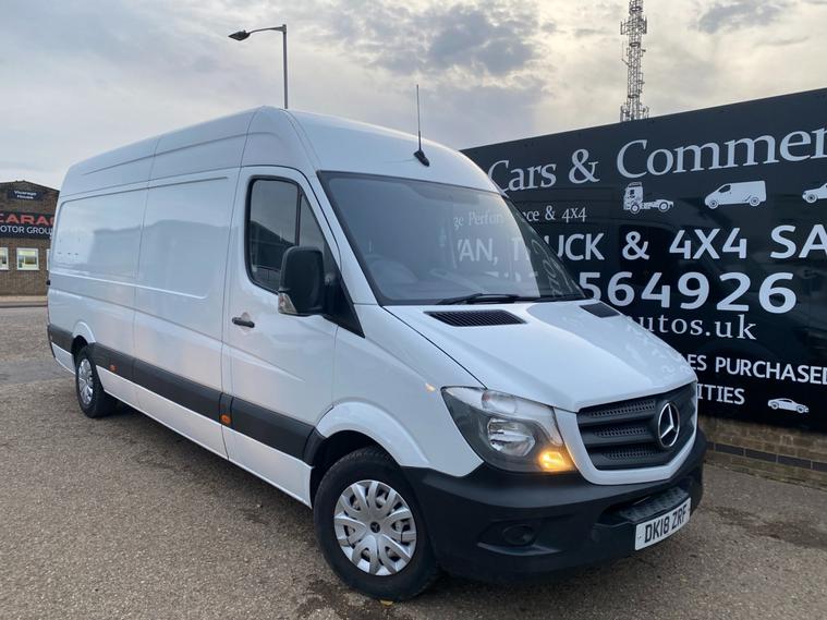 2018 18 REG LEGENDARY MERCEDES SPRINTER LWB LONG WHEEL BASE HI ROOF PANEL VAN COVERED 143815 MILES. 2.1 CDI 143 BHP TURBO DIESEL WITH 6 SPEED GEARBOX REAR WHEEL DRIVE. INDUSTRIAL LAUNDRY COMPANY OWNER FROM NEW WITH FULL MERCEDES MAIN VAN DEALER SERVICE HISTORY. ONLY BEEN USED TO TRANSPORT COMMERCIAL LINENS SO NOT HAD HARD LIFE. PLASTIC LINED AND INSULATED REAR LOAD AREA WITH FULLY SEALED FLOOR. VERY WELL LOOKED AFTER HENCE DRIVES SUPERB. 6 MONTHS NATIONWIDE PARTS AND LABOUR WARRANTY ALL INCLUDED IN THE PRICE. CURRENT MOT VALID TILL 03/05/2026, FULL 12 MONTHS MOT WITH CLEAN HEALTHCHECK UPON SALE ALONG WITH FULL SERVICE USING GENUINE MERCEDES FILTERS AND OIL. REAR VIEW CAMERA. 2 REMOTE KEYS. CRUISE CONTROL. BLUETOOTH TELEPHONE+AUDIO INTEGRATION. USB AUX IN MUSIC INTERFACE. DAYTIME RUNNING LIGHTS. ADAPTIVE BRAKE LIGHTS. STANDARD ROAD TAX BAND 12 MONTHS PRICED 345 POUNDS. 2000 KG TRAILER PULL CAPACITY. 5500 KG TRAIN WEIGHT. 1086KG PAYLOAD CAPACITY. SUPERB ECONOMY, BEST IN CLASS. HILL START ASSIST. CROSSWIND ASSIST. SHIFT POINT INDICATOR. OVERHEAD STORAGE SHELVING TO CAB. UNDERSEAT STORAGE. 3 SEATER CAB. CUP HOLDERS. SIDE MARKER LIGHTS. Bluetooth connection, Cruise control, PAS, Service indicator, Steering wheel mounted controls, Trip computer, Auxiliary input socket, Mobile phone App interface, OEM sound system, USB/iPod interface, Front electric windows, Front head restraints, Solid Paint, ABS, Drivers airbag, ESP, Traction control, Alarm, Immobiliser, Remote central locking, Cloth seat trim. GREAT VALUE FOR MONEY LATE MODEL SPRINTER. DRIVES LOVELY. NICE RELIABLE VEHICLE. CHOICE OF HAND PICKED QUALITY USED VANS IN STOCK NOW. CHOICE OF MERCEDES SPRINTERS ALWAYS IN STOCK. FINANCE ARRANGED AT MARKET LEADING RATES. NATIONWIDE DELIVERY SERVICE AVAILABLE. ALL DEALER FACILITIES. FULL PERSONALISED VIDEOS AVAILABLE. CONTACTLESS VIEWING & PURCHASING AVAILABLE. FOR ALL ENQUIRIES PLEASE CALL JIMMY ON 01733604129 / 01733604129. FOR MORE PICTURES PLEASE VISIT DEALER WEBSITE. SPECIALIST SUPPLIER OF PRESTIGE, PERFORMANCE & 4X4's. HONEST FRIENDLY & PROFESSIONALLY RUN FAMILY BUSINESS. 3 GENERATIONS OF EXPERIENCE. GENUINE 5 STAR SERVICE & REVIEWS TO REFLECT. BUY WITH CONFIDENCE. GOOD OLD FASHIONED NO NONSENSE CUSTOMER FIRST APPROACH. FOR FULL STOCKLIST PLEASE VISIT DEALER WEBSITE