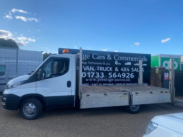 2019 69 IVECO DAILY 35-160 LWB DROPSIDE PICK UP TRUCK WITH TAIL LIFT LORRY WITH TWIN REAR WHEELS. 2.3 TURBO DIESEL 160 BHP ENGINE WITH 8 SPEED AUTOMATIC GEARBOX REAR WHEEL DRIVE. TWIN REAR WHEELS. 4.2METRE / 13 FEET 8 INCH BODY WITH MARINE PLY FLOOR. 500KG TAIL LIFT. DOUBLE DROPSIDE BOARDS WITH REMOVEABLE CENTRE MOUNT. BEEN OWNED BY 1 COMPANY SINCE NEW. REALLY WELL LOOKED AFTER TRUCK. DRIVES SUPERB, VERY CLEAN INSIDE OUT. CURRENT MOT VALID TILL 22/09/2026 WITH NO ADVISORIES. TRUCK WILL COME WITH FULL SERVICE USING GENUINE IVECO FILTERS AND OIL ALONG WITH FULL CAMBELT KIT WATER PUMP AND NEW DRIVEBELT. 6 MONTHS NATIONWIDE PARTS AND LABOUR WARRANTY INCLUDED IN PRICE. HIGH SPEC ISRI SEAT WITH SUSPENSION. TOWBAR. FULL COLOUR REAR VIEW CAMERA. 3500 KG 3.5TONNE GROSS VEHICLE WEIGHT. 3500 KG TRAILER PULL CAPACITY. 7TONNE TRAIN WEIGHT. 2474KG UNLADEN WEIGHT ON LOG BOOK. QUAD LEAF HEAVY DUTY REAR SPRINGS. AMBER FLASHING ROOF LIGHT AND REAR LED MARKERS. BLUETOOTH TELEPHONE AND AUDIO INTEGRATION. AIR CON. CRUISE CONTROL. REMOTE CENTRAL LOCKING. SUPERB WORKHORSE. CHOICE OF QUALITY USED HAND PICKED COMMERCIALS IN STOCK NOW. CHOICE OF PANEL VANS, TIPPERS, DROPSIDES, LUTONS, PICK UP'S, CREW CABS, SINGLE CABS ALL IN STOCK NOW. FOR MORE PICTURES AND TO VIEW FULL STOCKLIST PLEASE VISIT DEALER WEBSITE. FINANCE ARRANGED AT MARKET LEADING RATES. NATIONWIDE DELIVERY SERVICE AVAILABLE. ALL DEALER FACILITIES. FULL PERSONALISED VIDEOS AVAILABLE. CONTACTLESS VIEWING & PURCHASING AVAILABLE. FOR ALL ENQUIRIES PLEASE CALL JIMMY AT PRESTIGE CARS AND COMMERCIALS LIMITED. FOR MORE PICTURES PLEASE VISIT DEALER WEBSITE. SPECIALIST SUPPLIER OF PRESTIGE, PERFORMANCE & 4X4's. HONEST FRIENDLY & PROFESSIONALLY RUN FAMILY BUSINESS. 3 GENERATIONS OF EXPERIENCE. GENUINE 5 STAR SERVICE & REVIEWS TO REFLECT. BUY WITH CONFIDENCE. GOOD OLD FASHIONED NO NONSENSE CUSTOMER FIRST APPROACH. FOR FULL STOCKLIST PLEASE VISIT DEALER WEBSITE.