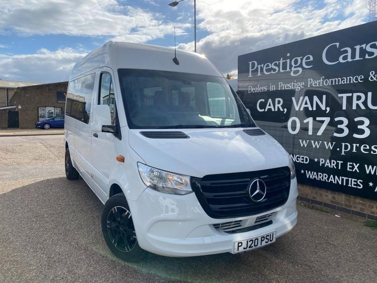 2020 20 PLATE MERCEDES SPRINTER WINDOW VAN COVERED 88670 MILES. PERFECT BASE VEHICLE FOR CAMPER RACE DAY LEISURE VAN / LUXURY MINIBUS VIP COACH CONVERSION. FULLY COLOUR CODED BODYWORK. JUST HAD THE WINDOWS DONE PROFESSIONALLY WITH SLIDING OPENERS TO BOTH SIDES. JUST HAD BRAND NEW ALUTEC GERMAN MADE LOAD RATED POLISHED ALLOYS AND TOP OF THE RANGE BRIDGESTONE TYRES FITTED. 3.5 TONNE MWB L2H2 LEGENDARY SPRINTER NEW SHAPE MODEL MWB MEDIUM WHEEL BASE HI ROOF PANEL VAN. 2.1 CDI 143 BHP TURBO DIESEL WITH 9 SPEED G-TRONIC AUTOMATIC TIPTRONIC GEARBOX. 1 LEASE CO OWNER FROM NEW WITH FULL MERCEDES MAIN VAN DEALER SERVICE HISTORY. 8 SERVICES CARRIED OUT ALREADY WITH ALL PRINT OUTS. SUPERBLY MAINTAINED+LOOKED AFTER, VAN WAS ON FULL REPAIR AND MAINTENANCE CONTRACT BY MERC MAIN VAN DEALER SINCE NEW SO MAINTAINED REGARDLESS OF COST. LAST SERVICED AT 81853 MILES. DRIVES BEAUTIFULLY. CURRENT MOT VALID TILL 02/09/2026 WITH NO ADVISORIES. 6 MONTHS NATIONWIDE PARTS AND LABOUR WARRANTY. 2 REMOTE KEYS. REAR PARKING SENSORS. INTELLIGENT PHONE LINK. APPLE/ANDROID CAR PLAY PHONE CONNECT. BLUETOOTH TELEPHONE AND AUDIO INTEGRATION. VOICE CONTROL COMMAND SYSTEM. 7 INCH MULTI MEDIA TOUCH SCREEN. LIVE TRAFFIC INFORMATION. COMMUNICATIONS MODULE. DAB DIGITAL RADIO. USB AUX IN MUSIC MEDIA CONNECT. MB CONNECT. EMERGENCY CALL SYSTEM. LOCKING GLOVEBOX. INTERIOR LIGHTING PACK. ATTENTION ASSIST. HEADLIGHT ASSIST. ACTIVE BRAKE ASSIST / FORWARD ALERT SYSTEM. THEFT PROTECTION PACKAGE. DOUBLE LOCKING. CRUISE CONTROL. BLUETOOTH TELEPHONE+AUDIO INTEGRATION. USB AUX IN MUSIC INTERFACE. DAYTIME RUNNING LIGHTS. ADAPTIVE BRAKE LIGHTS. STANDARD ROAD TAX BAND 12 MONTHS PRICED 345 POUNDS. SUPERB ECONOMY 31/35/38 MPG OFFICIAL FUEL ECONOMY FIGURES WHEN NEW. SUPERB ECONOMY, BEST IN CLASS. HILL START ASSIST. CROSSWIND ASSIST. SHIFT POINT INDICATOR. OVERHEAD STORAGE SHELVING TO CAB. UNDERSEAT STORAGE. 3 SEATER CAB. CUP HOLDERS. SIDE MARKER LIGHTS. 3500KG GROSS VEHICLE WEIGHT. 2200KG UNLADEN WEIGHT. 1300KG PAYLOAD CAPACITY. 2000KG TRAILER PULL CAPACITY. Bluetooth connection, Cruise control, PAS, Service indicator, Steering wheel mounted controls, Trip computer, Auxiliary input socket, Mobile phone App interface, OEM sound system, USB/iPod interface, Front electric windows, Front head restraints, Solid Paint, ABS, Drivers airbag, ESP, Traction control, Alarm, Immobiliser, Remote central locking, Cloth seat trim. SUPERB EXAMPLE OF RARE SPEC SPRINTER. LOVELY VAN. DRIVES AWESOME. CHOICE OF HAND PICKED QUALITY USED VANS IN STOCK NOW. CHOICE OF MERCEDES SPRINTERS ALWAYS IN STOCK. CHOICE OF PANEL VANS, CREW CABS, TIPPERS, DROPSIDES, LUTONS ALL IN STOCK NOW. FINANCE ARRANGED AT MARKET LEADING RATES. NATIONWIDE DELIVERY SERVICE AVAILABLE. ALL DEALER FACILITIES. FULL PERSONALISED VIDEOS AVAILABLE. CONTACTLESS VIEWING & PURCHASING AVAILABLE. FOR ALL ENQUIRIES PLEASE CALL JIMMY AT PRESTIGE CARS AND COMMERCIALS LIMITED. FOR MORE PICTURES PLEASE VISIT DEALER WEBSITE. SPECIALIST SUPPLIER OF PRESTIGE, PERFORMANCE & 4X4's. HONEST FRIENDLY & PROFESSIONALLY RUN FAMILY BUSINESS. 3 GENERATIONS OF EXPERIENCE. GENUINE 5 STAR SERVICE & REVIEWS TO REFLECT. BUY WITH CONFIDENCE. GOOD OLD FASHIONED NO NONSENSE CUSTOMER FIRST APPROACH. FOR FULL STOCKLIST PLEASE VISIT DEALER WEBSITE