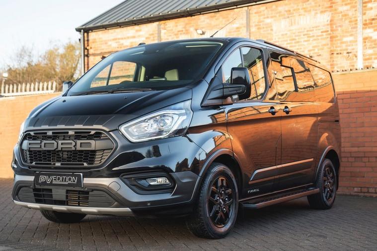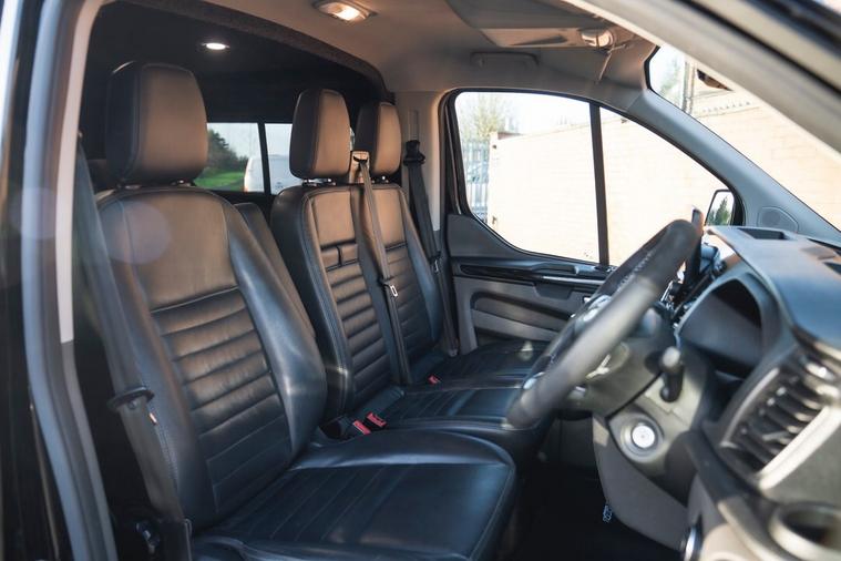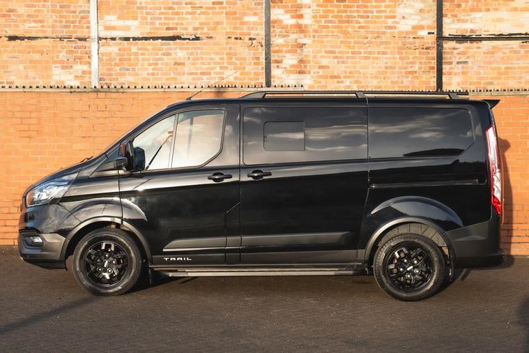 2022 FORD TRANSIT CUSTOM 2.0 TDCI FINISHED IN METALLIC BLACK, SWB, ONE OWNER PLUS SUPPLYING DEALER, 185BHP, 6 SPEED, 60000 MILES, SERVICE HISTORY WILL COME WITH A FULL SERVICE AND WETBELT CHANGE, 2 KEYS, TAILGATE, RARE TRAIL SPEC INCLUDING AIR CON, COLOUR CODED, FULL FACTORY LEATHER INTERIOR, BLUETOOTH, DAB, CRUISE CONTROL, AUTO LIGHTS WITH DRLS, AUTO WIPERS, PARKING SENSORS, REAR VIEW CAMERA, SIDE STEPS AND ROOF SPOILER, ROOF BARS, ALLOY WHEELS, RAPTOR GRILLE, CUSTOM DECALS, FLAT BOTTOM STEERING WHEEL, FULL CREW CAB CONVERSION WITH REMOVEABLE TOURNEO SEATS, FULLY CARPET LINED AND INSULATED WITH SPOTLIGHTS, FITTED WINDOWS, VERY CLEAN THROUGHOUT, ONLY 24, 995.00 ON THE ROAD NO VAT, UK DELIVERY AVAILABLE, WALK ROUND VIDEOS AVAILABLE ON REQUEST, ALL OUR VEHICLES ARE SANITIZED BEFORE COLLECTION, CLICK AND COLLECT AVAILABLE, RESERVE THIS VEHICLE FOR A £100 DEPOSIT, ALL OUR DESIGNS ARE BESPOKE AND CAN BE CHANGED TOO SUIT THE CUSTOMER IF REQUIRED, MORE PHOTOS AVAILABLE ON OUR WEBSITE
