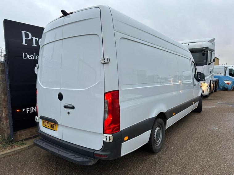 2020 70 REG LEGENDARY MERCEDES SPRINTER 315 LWB LONG WHEEL BASE HI ROOF PANEL VAN COVERED 93738 MILES WITH FULL MERCEDES MAIN DEALER SERVICE HISTORY. 2.0 CDI 150 BHP TURBO DIESEL ENGINE WITH 6 SPEED GEARBOX REAR WHEEL DRIVE. 1 COMPANY OWNER FROM NEW WITH FULL MERCEDES MAIN VAN DEALER SERVICE HISTORY. PLYLINED REAR WITH FACTORY WOOD FLOOR. ELECTRONIC DIGITAL SECURITY LOCKS TO LOAD AREA WITH TAG OPENING. VERY RARE 2 SEATER CAB (CAN EASILY CONVERT TO STANDARD 3 SEATER CAB). 6 MONTHS NATIONWIDE PARTS AND LABOUR WARRANTY. CURRENT MOT VALID TILL 10/10/2026 WITH NO ADVISORIES, FULL 12 MONTHS MOT UPON SALE ALONG WITH FULL SERVICE USING GENUINE MERCEDES FILTERS AND OIL. FULL COLOUR REAR VIEW CAMERA. CRUISE CONTROL. ACTIVE BRAKE ASSIST. DAB DIGITAL RADIO. ANTI THEFT DOUBLE LOCKING. BLUETOOTH TELEPHONE+AUDIO INTEGRATION. USB AUX IN MUSIC INTERFACE. DAYTIME RUNNING LIGHTS. ADAPTIVE BRAKE LIGHTS. STANDARD ROAD TAX BAND 12 MONTHS PRICED 345 POUNDS. 2380KG UNLADEN WEIGHT. 1120KG PAYLOAD CAPACITY. 2000 KG TRAILER PULL CAPACITY. 5500 KG TRAIN WEIGHT. SUPERB ECONOMY, BEST IN CLASS. HILL START ASSIST. CROSSWIND ASSIST. SHIFT POINT INDICATOR. OVERHEAD STORAGE SHELVING TO CAB. UNDERSEAT STORAGE. 3 SEATER CAB. CUP HOLDERS. SIDE MARKER LIGHTS. FULL SIZE SPARE WHEEL. Bluetooth connection, Cruise control, PAS, Service indicator, Steering wheel mounted controls, Trip computer, Auxiliary input socket, Mobile phone App interface, OEM sound system, USB/iPod interface, Front electric windows, Front head restraints, Solid Paint, ABS, Drivers airbag, ESP, Traction control, Alarm, Immobiliser, Remote central locking, Cloth seat trim. GREAT VALUE FOR MONEY LATE MODEL SPRINTER. DRIVES LOVELY. CHOICE OF HAND PICKED QUALITY USED VANS IN STOCK NOW. CHOICE OF MERCEDES SPRINTERS ALWAYS IN STOCK.