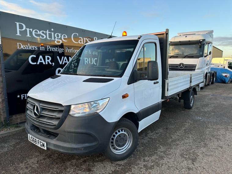 2018 68 REG RARE AUTOMATIC MERCEDES SPRINTER COVERED 162860 MILES. 3.5 TONNE LWB L3 LEGENDARY SPRINTER LONG WHEEL BASE PICK UP TRUCK DROPSIDE LORRY. 2.1 CDI 143 BHP TURBO DIESEL WITH 7 SPEED AUTOMATIC GEARBOX. 1 COMPANY OWNER FROM NEW. WILL BE GIVEN FULL SERVICE INCLUDING GEAR OIL CHANGE WITH GENUINE MB PARTS AND OIL PRIOR TO HANDOVER. DRIVES BEAUTIFULLY. 200KG TOWING CAPACITY. CURRENT MOT VALID TILL 03/04/2026 WITH NO ADVISORIES. FULL 12 MONTHS MOT UPON SALE. 4.325 METRE WHEELBASE WITH 1.615 METRE OVERHANG. LARGE REAR LOCKING TOOLBOX. 2 FULL REMOTE KEYS. LIGHTWEIGHT ALUMINIUM DROPSIDES AND FRAME WITH MARINE PLY FLOORING. SPLIT DROPBOARDS FOR EASY LOADING. AMBER FLASHING ROOF BEACON. BODY SIZE IS 2.03 METRE / 6 FEET 9 INCHES WIDE X 14 FEET / 4.3 METRE LONG. AUTOMATIC LIGHTS AND WIPERS. REAR BULKHEAD LOAD GUARD/CAGE. ACTIVE BRAKE ASSIST. MERCEDES EMERGENCY CALL SYSTEM. CRUISE CONTROL. APPLE ANDROID SMARTPHONE INTEGRATION. APPS CONNECT. BLUETOOTH TELEPHONE+AUDIO INTEGRATION. USB AUX IN MUSIC INTERFACE. DAYTIME RUNNING LIGHTS. ADAPTIVE BRAKE LIGHTS. STANDARD VAN ROAD TAX BAND 12 MONTHS PRICED 345 POUNDS. 3500 KG GROSS VEHICLE WEIGHT. 2000KG TOWING CAPACITY. 5500KG 7TONNE TRAIN WEIGHT. UNLADEN WEIGHT 2292KG, 1208KG PAYLOAD CAPACITY. SUPERB ECONOMY, BEST IN CLASS. HILL START ASSIST. CROSSWIND ASSIST. OVERHEAD STORAGE SHELVING TO CAB. UNDERSEAT STORAGE. 3 SEATER CAB. CUP HOLDERS. SIDE MARKER LIGHTS. 62MPH LIMITER, CAN BE REMOVED BY US IF REQUIRED. Bluetooth connection, Cruise control, PAS, Service indicator, Steering wheel mounted controls, Trip computer, Auxiliary input socket, Mobile phone App interface, OEM sound system, USB/iPod interface, Front electric windows, Front head restraints, Solid Paint, ABS, Drivers airbag, ESP, Traction control, Alarm, Immobiliser, Remote central locking, Cloth seat trim. CHOICE OF 2 IDENTICAL SISTER VEHICLES IN STOCK NOW. WIDE SELECTION OF MERCEDES SPRINTERS IN STOCK NOW. CHOICE OF HAND PICKED QUALITY USED VANS IN STOCK NOW. CHOICE OF MERCEDES SPRINTERS ALWAYS IN STOCK. CHOICE OF PANEL VANS, DROPSIDE PICK UPS, TIPPERS, LUTONS ALL IN STOCK NOW. FINANCE ARRANGED AT MARKET LEADING RATES. NATIONWIDE DELIVERY SERVICE AVAILABLE. ALL DEALER FACILITIES. FULL PERSONALISED VIDEOS AVAILABLE. CONTACTLESS VIEWING & PURCHASING AVAILABLE. FOR ALL ENQUIRIES PLEASE CALL JIMMY AT PRESTIGE CARS AND COMMERCIALS LIMITED. FOR MORE PICTURES PLEASE VISIT DEALER WEBSITE. SPECIALIST SUPPLIER OF PRESTIGE, PERFORMANCE & 4X4's. HONEST FRIENDLY & PROFESSIONALLY RUN FAMILY BUSINESS. 3 GENERATIONS OF EXPERIENCE. GENUINE 5 STAR SERVICE & REVIEWS TO REFLECT. BUY WITH CONFIDENCE. GOOD OLD FASHIONED NO NONSENSE CUSTOMER FIRST APPROACH. FOR FULL STOCKLIST PLEASE VISIT DEALER WEBSITE