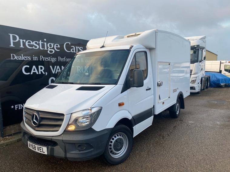 2018 68reg MERCEDES SPRINTER 314 CDI MEDIUM WHEEL BASE MWB FIRDGE FREEZER CHILLER BOX COVERED 126014 MILES BY 1 COMPANY OWNER WITH FULL SERVICE HISTORY. SUPERBLY MAINTAINED AND LOOKED AFTER, DRIVES LOVELY AND VERY CLEAN INSIDE OUT. SERVICED ALL UP TO DATE READY FOR WORK. CURRENT MOT VALID TILL 11/08/2026 WITH NO ADVISORIES, FULL 12 MONTHS MOT UPON SALE. RECENT NEW TYRES ALL ROUND. STANDARD VAN TAX BAND 12 MONTHS PRICED 345 POUNDS. THERMOKING UNITS VAN BUILT BY SOLOMON. SIDE LOADING FREEZER COMPARTMENT. OVERALL BOX LENGTH IS 12FT 5 INCH / 3.8 METRE. LOAD AREA FLOOR SIZE IS 2.6 METRE / 8 FOOT 6 INCHES LONG X 1.95 METRE / 6 FEET 5 INCHES. SPLIT LOADING DOOR TOTAL LOADING ENTRANCE IS 1.34 METRE / 4 FOOT 5 INCHES WIDE X 1.6 METRE / 5FOOT 3 INCHES HIGH. CRUISE CONTROL. REAR VIEW CAMERA. WEIGHING SYSTEM FITTED. BLUETOOTH TELEPHONE AND AUDIO INTEGRATION WITH USB MUSIC MEDIA CONNECT. 2 SEATER CAB WITH FOLD DOWN PASSENGER SEAT (CAN EASILY CONVERT TO FULL 3 SEATER CAB PLEASE ENQUIRE WITH US). 3500KG GROSS VEHICLE WEIGHT. 2330 UNLADEN WEIGHT, 1170KG PAYLOAD CAPACITY. 2000KG TRAILER PULL CAPACITY. 3665MM WHEELBASE. NICE EXAMPLE. CHOICE OF QUALITY USED HAND PICKED COMMERCIALS IN STOCK NOW. CHOICE OF PANEL VANS, TIPPERS, DROPSIDES, LUTONS, PICK UP'S, CREW CABS, SINGLE CABS ALL IN STOCK NOW. FOR MORE PICTURES AND TO VIEW FULL STOCKLIST PLEASE VISIT DEALER WEBSITE. FINANCE AVAILABLE FROM ZERO DEPOSIT WITH VAT FUNDED OPTIONS TOO. FINANCE ARRANGED AT MARKET LEADING RATES. NATIONWIDE DELIVERY SERVICE AVAILABLE. ALL DEALER FACILITIES. FULL PERSONALISED VIDEOS AVAILABLE. CONTACTLESS VIEWING & PURCHASING AVAILABLE. CHOICE OF QUALITY USED HAND PICKED COMMERCIALS IN STOCK NOW. CHOICE OF PANEL VANS, TIPPERS, DROPSIDES, LUTONS, PICK UP'S, CREW CABS, SINGLE CABS ALL IN STOCK NOW. FOR MORE PICTURES AND TO VIEW FULL STOCKLIST PLEASE VISIT DEALER WEBSITE. FINANCE ARRANGED AT MARKET LEADING RATES. NATIONWIDE DELIVERY SERVICE AVAILABLE.