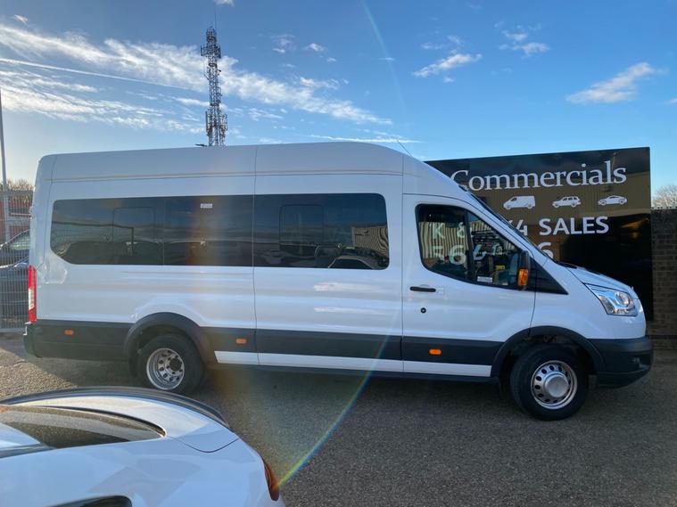 2017 67 PLATE FORD TRANSIT 460 ECONETIC TREND L4H3 XLWB JUMBO 17 SEATER MINIBUS EURO 6 ULEZ+LEZ CLEAN AIR ZONE COMPLIANT. 1 GRAMMAR SCHOOL OWNER FROM NEW COVERED GENUINE LOW 38390 MILES / 61784 KILOMETRES. ROBUST RELIABLE 2.2 TDCI 125 BHP TURBO DIESEL CHAIN DRIVEN ENGINE WITH 6 SPEED MANUAL GEARBOX. SOLID FROZEN WHITE PAINTWORK WITH CHARCOAL BLACK SEATS. TOP SPEC TREND MODEL. 17 SEATER INCLUDING DRIVER. CURRENT MOT VALID TILL 26/11/26 WITH NO ADVISORIES, 6 MONTHS NATIONWIDE PARTS AND LABOUR WARRANTY. CHEAP BUS TAX BAND 12 MONTHS PRICED 165 POUNDS. FULLY SERVICED UP TO DATE BY FORD MAIN DEALER WITH CLEAN HEALTH CHECK. READY FOR WORK. LOVELY LOOKING BUS. TWIN REAR WHEELS. LED DAYTIME RUNNING LIGHTS. AIR CON FRONT AND REAR. ELEC WINDOWS. ELEC FOLDING AND ADJUSTABLE MIRRORS. REMOTE CENTRAL LOCKING. REAR VIEW CAMERA. PARKING SENSORS FRONT AND REAR. DRIVER ALERT SYSTEM. LANE DEPARTURE WARNING SYSTEM. CRUISE CONTROL. FACTORY FITTED PRIVACY TINTED GLASS. REAR OVERHEAD STOWAGE SHELVING WITH INDIVIDUAL READING LIGHTS AND TWIN AIR DUCTS TO EACH SEAT. 3 POINT SEAT BELTS. REAR SEATS FOLDING ARMRESTS WITH INDIVIDUALLY RECLINING SEATS. REAR SUNROOF. CD RADIO MP3 PLAYER WITH AUX IN USB MUSIC MEDIA CONNECT. BLUETOOTH TELEPHONE AND AUDIO INTEGRATION. VOICE CONTROL COMMAND SYSTEM. FRONT FOGS. LANE DEPARTURE WARNING SYSTEM. DIGITAL TACHOGRAPH. AUTO DIMMING MIRRORS. 62 MPH/100 KMH ELEC SPEED LIMITER. ELEC RETRACTING SIDE STEP AUTOMATIC. RUBBER FLOORING FRONT AND REAR. HILL START ASSIST. WRAPAROUND TWIN REAR DOORS. VISIBILITY PACK HIGH. FIRE EXTINGUISHER. LOCKING GLOVEBOX. ASSIST HANDLES. COAT HOOKS. AUTO LIGHTS AND WIPERS. ISOFIX SAFETY CHILD SEAT POINT. HEATED FRONT SCREEN AND HEATED REAR WINDOWS. MULTI FUNCTION LEATHER STEERING WHEEL. DRIVES AIRBAG. PASSENGER SWITCHABLE AIRBAG. 4600 KG GROSS VEHICLE WEIGHT. 3281KG UNLADEN WEIGHT. 1319KG PAYLOAD CAPACITY. 1950KG TRAILER PULL CAPACITY. SUPERB LOOKING BUS. DRIVES BEAUTIFULLY. VIRTUALLY MINT CONDITION INSIDE OUT. CHOICE OF MINIBUSES ALWAYS IN STOCK. MANY MORE PICTURES ON OUR WEBSITE. CHOICE OF QUALITY USED HAND PICKED COMMERCIALS IN STOCK NOW.