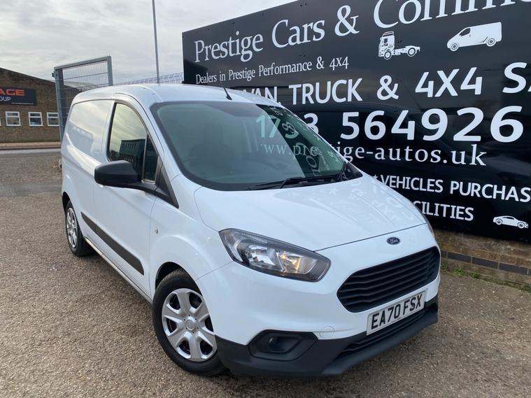 2020 70 REG FORD TRANSIT COURIER 1.5 TDCI HIGH SPEC SMALL SIZED PANEL VAN COVERED 76462 MILES BY 1 PLC COMPANY OWNER FROM NEW WITH FULL FORD MAIN DEALER SERVICE HISTORY. 6 SERVICES CARRIED OUT ALREADY, JUST BEEN SERVICED BY US WITH NEW BRAKE PADS USING GENUINE FORD PARTS AND OIL. 2 NEW TYRES JUST FITTED. SUPERBLY MAINTAINED AND LOOKED AFTER. 1.5 TDCI ECO BLUE 75 BHP ENGINE WITH 6 SPEED MANUAL GEARBOX. VERY CLEAN INSIDE OUT. DRIVES SUPERB. CURRENT MOT VALID TILL 15/16/2026 WITH NO ADVISORIES. 6 MONTHS NATIONWIDE PARTS AND LABOUR WARRANTY. SUPERB ECONOMY UP TO 60 MPG. STANDARD VAN TAX BAND 12 MONTHS PRICED 345. 2 FULL REMOTE KEYS. AIR CON. BLUETOOTH TELEPHONE AND AUDIO INTEGRATION. VOICE CONTROL COMMAND SYSTEM. DAB DIGITAL RADIO. USB MUSIC MEDIA CONNECT. AUTO LIGHTS AND WIPERS. FRONT FOGS. PLYLINED IN REAR. TWIN REAR DOORS WITH 180 DEGREE OPENING. SIDE LOADING DOOR. LEATHER MULTI FUNCTION STEERING WHEEL. FULL SIZE BULKHEAD. HARD PLASTIC EASY CLEAN FLOORING TO CAB. REAR LOAD AREA LASHING POINTS. FORD WHEEL TRIMS. REALLY NICE EXAMPLE. 1840KG GROSS VEHICLE WEIGHT. 1343 UNLADEN WEIGHT. 497KG PAYLOAD CAPACITY. Trip computer, Smart phone dock, PAS, Easy fuel capless refuelling system, Door open warning light, Auto headlamps and rain sensing wipers, Steering wheel mounted audio controls, Aux input socket, Trailer sway control, Side loading door - Nearside, Self coloured front and rear bumpers, Front fog lights, Electric heated door mirrors, Daytime running lights, Black bodyside mouldings, Under seat storage, Reach and rake adjustable steering column, Overhead storage console, Leather steering wheel and gearknob, Babylon cloth upholstery, 4 way adjustable passenger seat, 12V powerpoint in loadbox, Front 3 point seatbelts, Drivers airbag, Driver seatbelt reminder, Remote central double locking, Immobiliser, Deadlocks, 2nd remote key, Roll over mitigation, Hill launch assist, ESC with ABS + EBA + EBD, Auto start/stop system and, Improved flooded battery, Locking glovebox. CHOICE OF QUALITY USED HAND PICKED COMMERCIALS IN STOCK NOW. CHOICE OF PANEL VANS, TIPPERS, DROPSIDES, LUTONS, PICK UP'S, CREW CABS, SINGLE CABS ALL IN STOCK NOW.