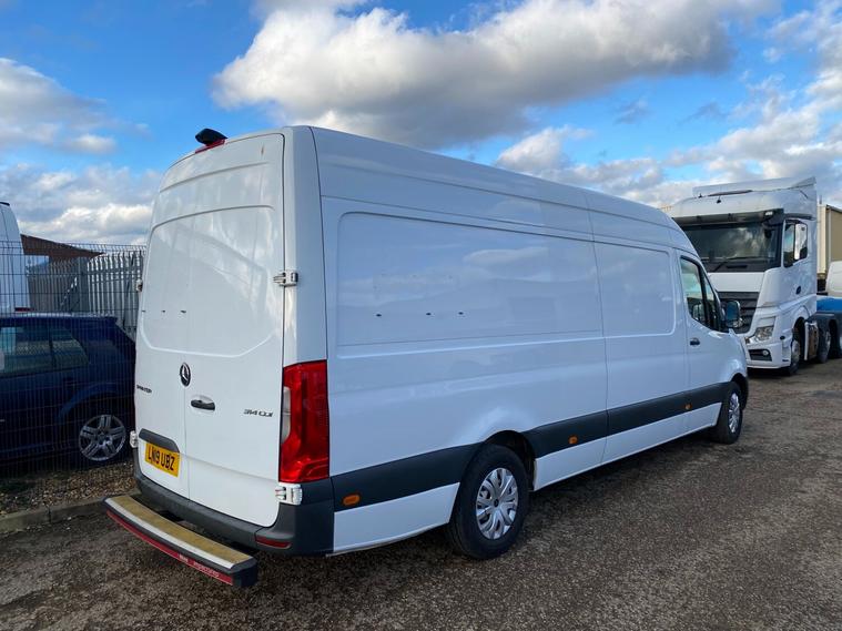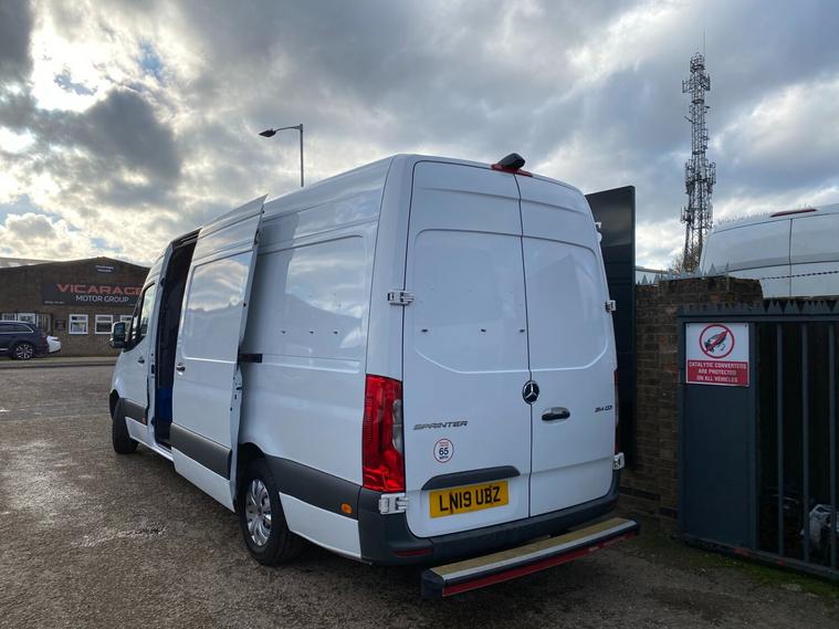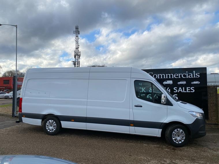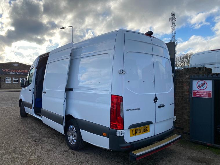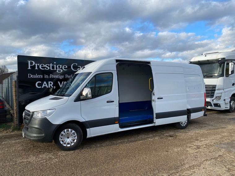 2019 19reg MERCEDES SPRINTER LWB LONG WHEEL BASE HI ROOF PANEL VAN COVERED 161288 MILES. 2.1 CDI 143 BHP TURBO DIESEL WITH 6 SPEED GEARBOX REAR WHEEL DRIVE. 1 LAUNDRY COMPANY OWNER FROM NEW WITH FULL MERCEDES MAIN VAN DEALER SERVICE HISTORY. LAST SERVICED AT 155037 MILES ON 16/09/2025 SO NEXT DUE AT 179K MILES. ONLY BEEN USED TO TRANSPORT COMMERCIAL LINENS SO NOT HAD HARD LIFE. PLASTIC LINED AND INSULATED REAR LOAD AREA WITH FULLY SEALED FLOOR. VERY WELL LOOKED AFTER HENCE DRIVES SUPERB. 6 MONTHS NATIONWIDE PARTS AND LABOUR WARRANTY ALL INCLUDED IN THE PRICE. CURRENT MOT VALID TILL 14/04/2026, FULL 12 MONTHS MOT UPON SALE. FACTORY FITTED FULL COLOUR REAR VIEW CAMERA. REAR SAFE-T BAR STEP. CRUISE CONTROL. ACTIVE BRAKE ASSIST. DAB DIGITAL RADIO. ANTI THEFT DOUBLE LOCKING. BLUETOOTH TELEPHONE+AUDIO INTEGRATION. USB AUX IN MUSIC INTERFACE. DAYTIME RUNNING LIGHTS. ADAPTIVE BRAKE LIGHTS. STANDARD ROAD TAX BAND 12 MONTHS PRICED 345 POUNDS. 2000 KG TRAILER PULL CAPACITY. 5500 KG TRAIN WEIGHT. SUPERB ECONOMY, BEST IN CLASS. HILL START ASSIST. CROSSWIND ASSIST. SHIFT POINT INDICATOR. OVERHEAD STORAGE SHELVING TO CAB. UNDERSEAT STORAGE. 3 SEATER CAB. CUP HOLDERS. SIDE MARKER LIGHTS. Bluetooth connection, Cruise control, PAS, Service indicator, Steering wheel mounted controls, Trip computer, Auxiliary input socket, Mobile phone App interface, OEM sound system, USB/iPod interface, Front electric windows, Front head restraints, Solid Paint, ABS, Drivers airbag, ESP, Traction control, Alarm, Immobiliser, Remote central locking, Cloth seat trim. GREAT VALUE FOR MONEY LATE MODEL SPRINTER. DRIVES LOVELY. NICE RELIABLE VEHICLE. CHOICE OF HAND PICKED QUALITY USED VANS IN STOCK NOW. CHOICE OF MERCEDES SPRINTERS ALWAYS IN STOCK.
