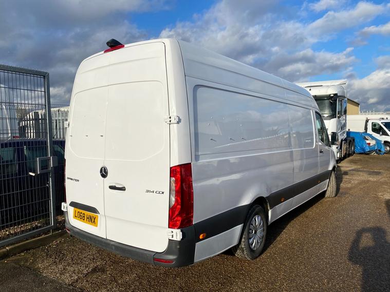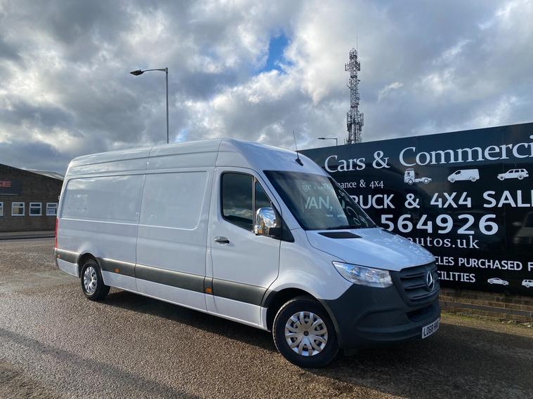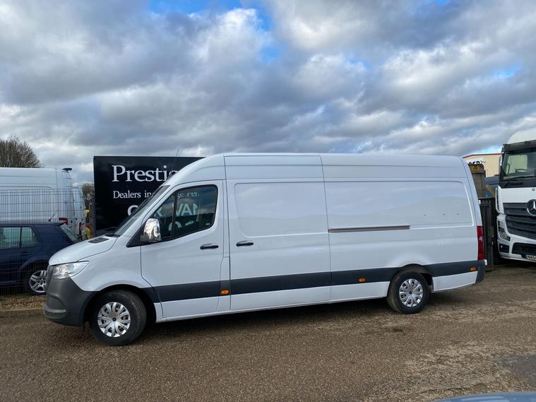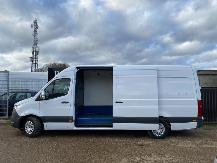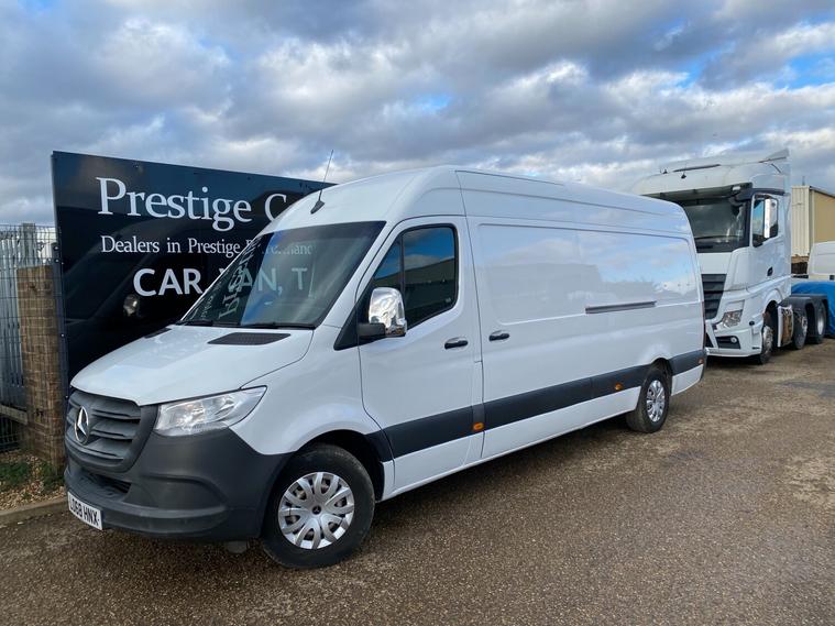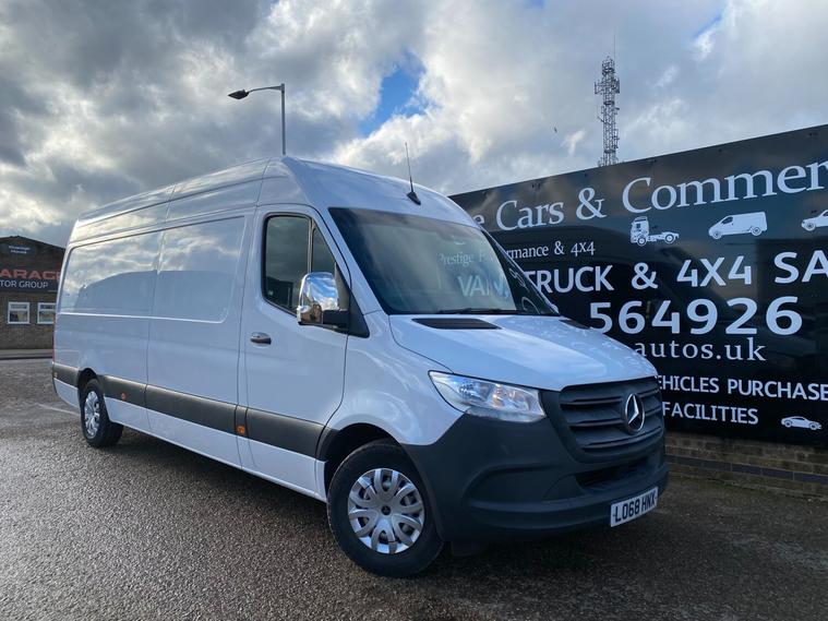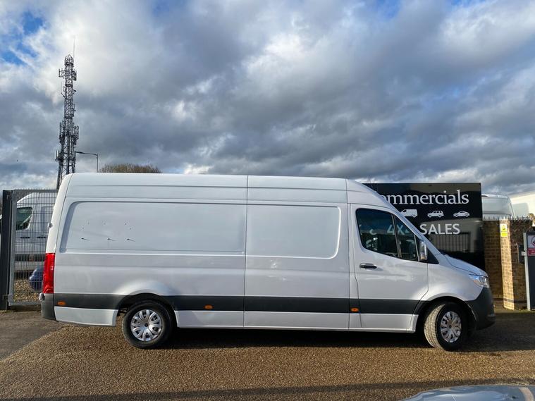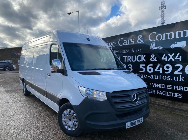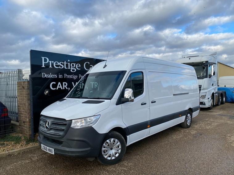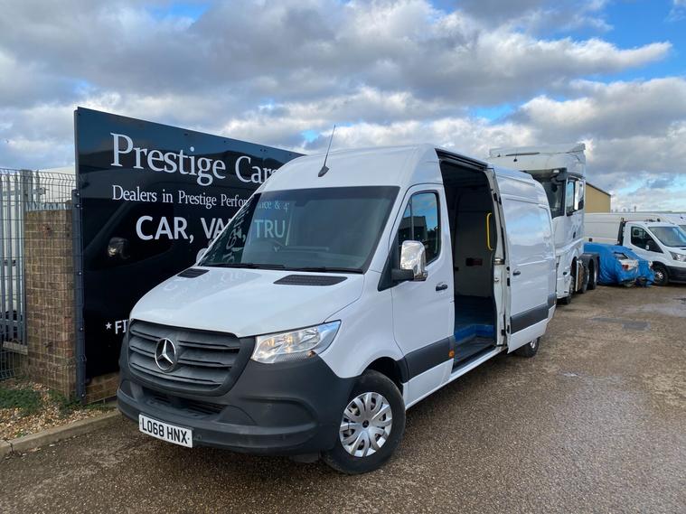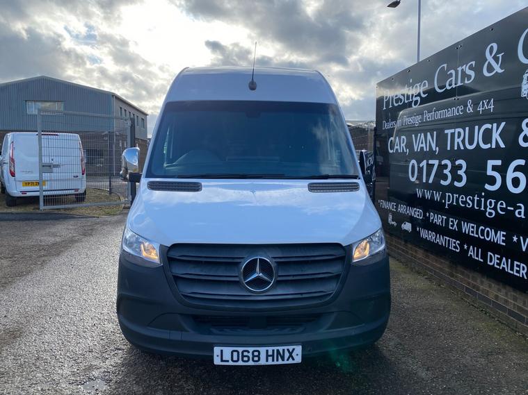 2019 68reg MERCEDES SPRINTER LWB LONG WHEEL BASE HI ROOF PANEL VAN COVERED 140116 MILES. 2.1 CDI 143 BHP TURBO DIESEL WITH 6 SPEED GEARBOX REAR WHEEL DRIVE. 1 LAUNDRY COMPANY OWNER FROM NEW WITH FULL MERCEDES MAIN VAN DEALER SERVICE HISTORY. ONLY BEEN USED TO TRANSPORT COMMERCIAL LINENS SO NOT HAD HARD LIFE. PLASTIC LINED AND INSULATED REAR LOAD AREA WITH FULLY SEALED FLOOR. VERY WELL LOOKED AFTER HENCE DRIVES SUPERB. 6 MONTHS NATIONWIDE PARTS AND LABOUR WARRANTY ALL INCLUDED IN THE PRICE. CURRENT MOT VALID TILL 01/02/2027 WITH NO ADVISORIES, JUST HAD FULL SERVICE USING GENUINE MERCEDES FILTERS AND OIL AND NEW BREMBO BRAKE PADS. FACTORY FITTED FULL COLOUR REAR VIEW CAMERA. CRUISE CONTROL. 2 KEYS. ACTIVE BRAKE ASSIST. DAB DIGITAL RADIO. ANTI THEFT DOUBLE LOCKING. BLUETOOTH TELEPHONE+AUDIO INTEGRATION. USB AUX IN MUSIC INTERFACE. DAYTIME RUNNING LIGHTS. ADAPTIVE BRAKE LIGHTS. STANDARD ROAD TAX BAND 12 MONTHS PRICED 345 POUNDS. 1089kg PAYLOAD CAPACITY. 2000 KG TRAILER PULL CAPACITY. 5500 KG TRAIN WEIGHT. SUPERB ECONOMY, BEST IN CLASS. HILL START ASSIST. CROSSWIND ASSIST. SHIFT POINT INDICATOR. OVERHEAD STORAGE SHELVING TO CAB. UNDERSEAT STORAGE. 3 SEATER CAB. CUP HOLDERS. SIDE MARKER LIGHTS. 65MPH SPEED LIMITER (CAN BE REMOVED BY US IF REQUIRED) FULL SIZE SPARE WHEEL. Bluetooth connection, Cruise control, PAS, Service indicator, Steering wheel mounted controls, Trip computer, Auxiliary input socket, Mobile phone App interface, OEM sound system, USB/iPod interface, Front electric windows, Front head restraints, Solid Paint, ABS, Drivers airbag, ESP, Traction control, Alarm, Immobiliser, Remote central locking, Cloth seat trim. GREAT VALUE FOR MONEY LATE MODEL SPRINTER. DRIVES LOVELY. CHOICE OF HAND PICKED QUALITY USED VANS IN STOCK NOW. CHOICE OF MERCEDES SPRINTERS ALWAYS IN STOCK.