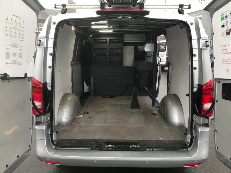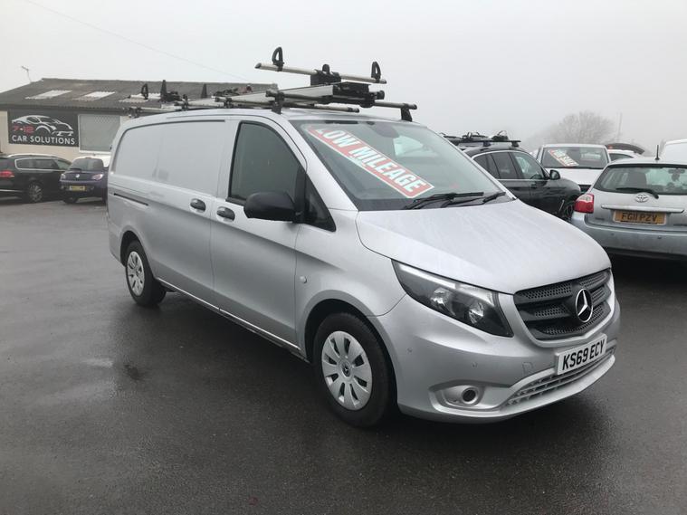 ""GENUINE 84718 MILES L2 2019 69 PLATE EURO 6"" 2019 MERCEDES-BENZ VITO 110 CDI PROGRESSIVE STOP/START 3 SEAT 6 DOOR 6 SPEED L2 H1 PANEL VAN, IN CIRRUS SILVER WITH CONTRASTING CHARCOAL GREY SOFT CLOTH MERCEDES BENZ INTERIOR, GENUINE 84718 MILES ONE FORMER KEEPER FROM NEW, FULL SERVICE HISTORY - INTERVALS AT 23155 MILES/ 39287 MILES/ 64700 MILES/ 83055 MILES....EXTRAS INCLUDE...2 Keys, Colour Reversing Camera, Cruise Control, Active Brake ASSIST, Crosswind Assist, Van Guard Ultra Roof Bars, Electromechanical Steering, ABS - Anti-Lock Braking System, Double Co-Driver Seat, Mid Tinted Factory Fitted Glass, Halogen Fog Lights, SRS Airbag System, Remote Combined Alarm Central Locking With Double Locks Plus Anti-Theft Protection Package, Headlight Assistant, Front Electric Windows, Heated Electric Adjustable Door Mirrors, Multifunction Steering Wheel, Rain Sensor Wipers, Heat Insulating Glass, Lumbar Support for Driver Seat, Rake and Reach Adjustment Steering Wheel, ""RHINO Safe Stow 4"" Roof Racking System With Racking Ladder And 4 Roof Bars, Twin Side loading Doors With Contrasting Twin Unglazed Rear Doors With 180 Degree Opening All Designed For Easy Safe Loading, Storage And Racking In Cargo Area, Wireless Tyre Pressure Monitoring, Lockable Glove Compartment, 16in Steel Wheels With Full Trim Covers, 2 x USB, 12v Power Socket, Quadrophonic Sound Surround Audio 30 Entertainment Stereo System..."" A Perfect Addition To Anybody's Growing Business"" Absolute First Glass Value Commercial Panel Van A Real Pleasure To Drive None Abused Van Stunning Colour Extra Combination Grab Yourself A Bargain.."" Don't Miss Out On This Opportunity"" PX WELCOME...THIS VAN COMES WITH A FULL 12 MONTHS MOT PLUS AN OIL AND FILTER SERVICE PLUS YOU GET OUR WARRANTY AND A 12 MONTHS AA BREAKDOWN WARRANTY ALL WITHIN THE PRICE.. EMAIL FOR FURTHER DETAILS, POSSIBLE UK DELIVERY (Subject to T&C) PLEASE ASK FOR DETAILS