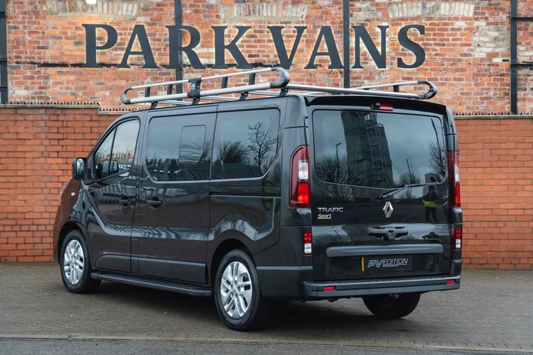 2021 RENAULT TRAFIC 2.0 DCI FINISHED IN METALLIC BLACK, 9000 MILES, SERVICE HISTORY, ONE OWNER, 2 KEYS, AUTOMATIC, TAILGATE, 170 BHP, TOP OF THE RANGE SPORT SPEC INCLUDING AIR CON, NAV, BLUETOOTH, CRUISE CONTROL, REVERSE CAMERA, PARKING SENSORS, AUTO LIGHTS, ELECTRIC WINDOWS AND MIRRORS, ALLOY WHEELS, COLOUR CODED, FRONT FOGS, HEATED FRONT SCREEN, ROOF RACK, BULLBAR, SIDE STEPS, ROOF BARS, ROOF SPOILER, CREW CAB CONVERSION WITH REMOVABLE SEATS, FULLY CARPET LINED AND INSULATED INCLUDING ROOF, FITTED WINDOWS AND BLINDS ALL ROUND, IMMACULATE THROUGHOUT, A VERY RARE VAN ONLY 25, 995.00 ON THE ROAD NO VAT, UK DELIVERY AVAILABLE, WALK ROUND VIDEOS AVAILABLE ON REQUEST, ALL OUR VEHICLES ARE SANITIZED BEFORE COLLECTION, CLICK AND COLLECT AVAILABLE, RESERVE THIS VEHICLE FOR A £100 DEPOSIT, ALL OUR DESIGNS ARE BESPOKE AND CAN BE CHANGED TOO SUIT THE CUSTOMER IF REQUIRED