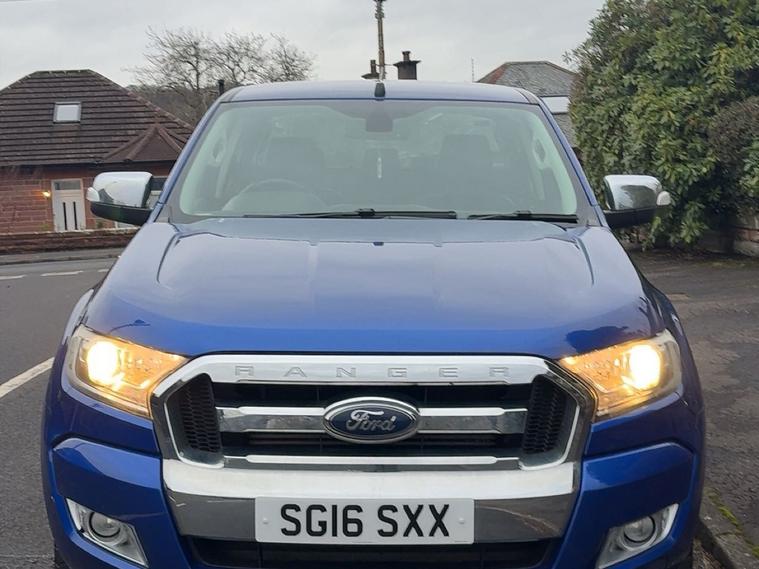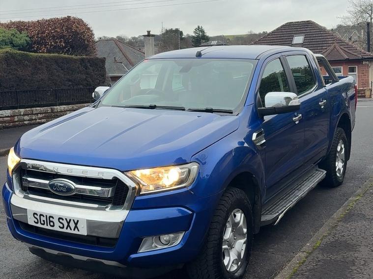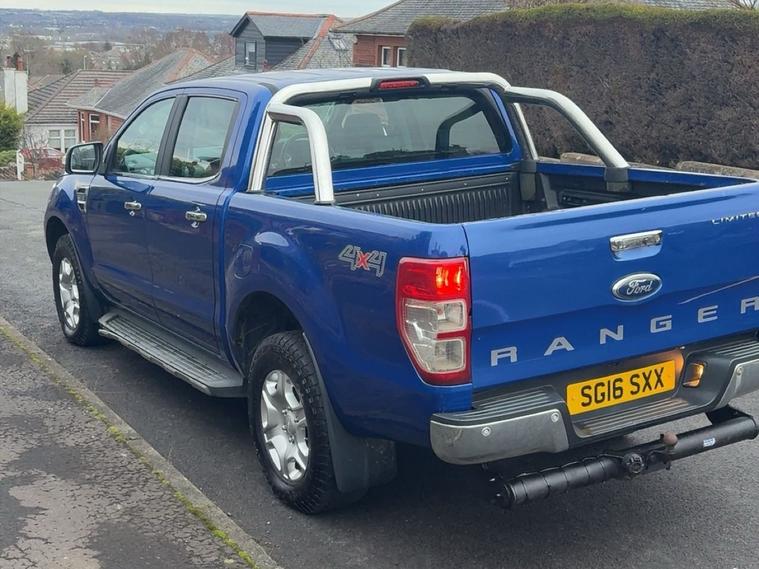 Ford Ranger Limited 4x4 double cab 3.2 diesel, 2016 16 reg, blue with black leather interior, 6 speed manual, selectable 4wd modes, electric windows and mirrors, heated seats, parking assist, hands free, cruise control, digital dash, side steps, aircon, 12v points, 122, 000 miles, 2 keys, MOTd November 2026 £8495 plus vat