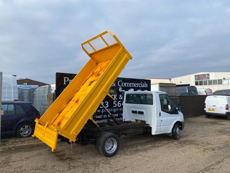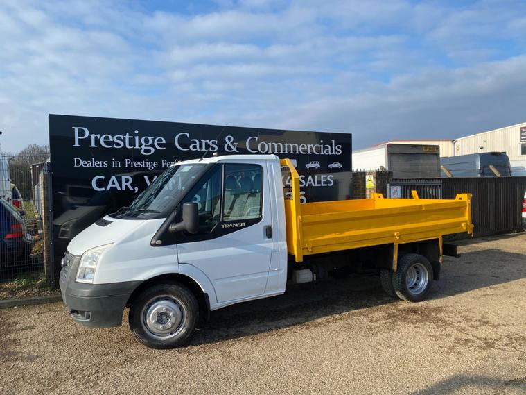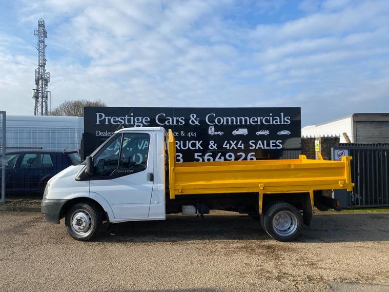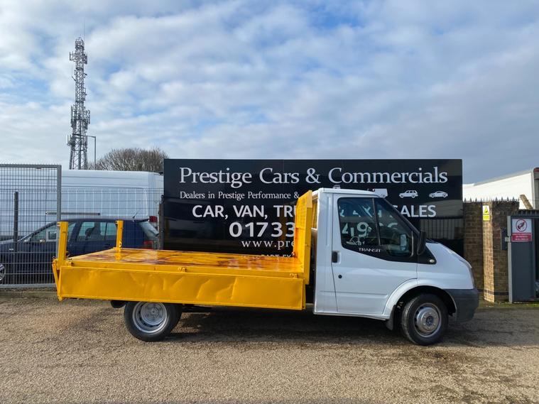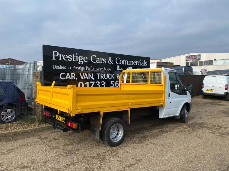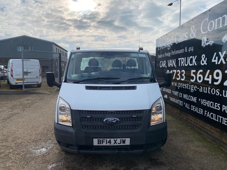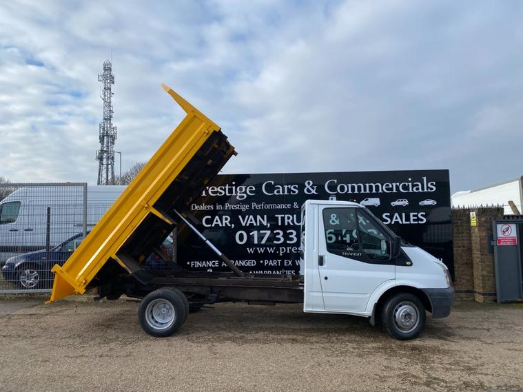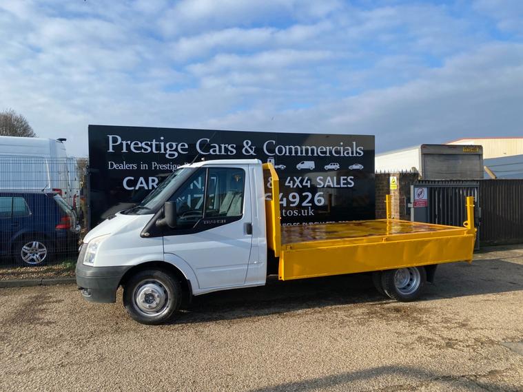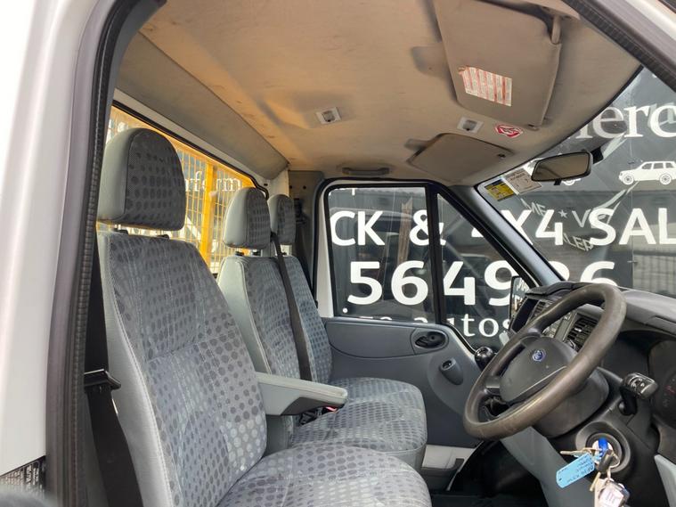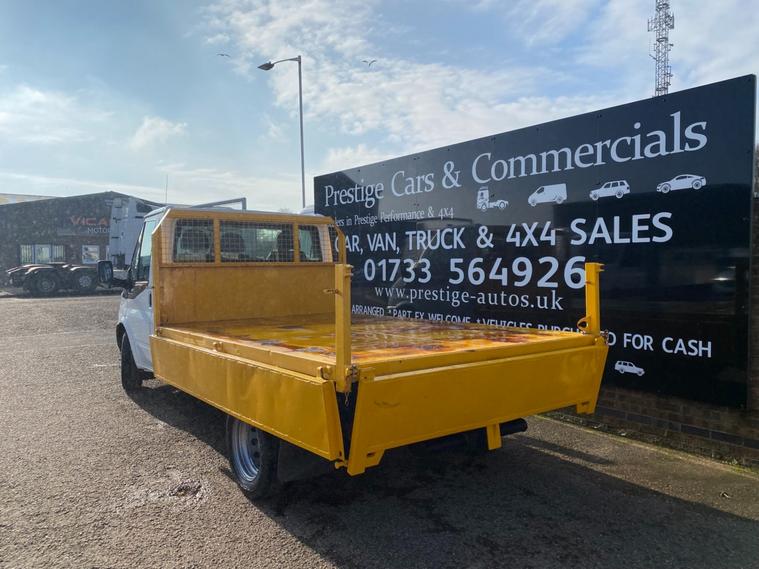 2014 14 REG FORD TRANSIT T350 MWB TRUSTY MK7 TIPPER DROPSIDE PICK UP TRUCK COVERED GENUINE LOW 75106 MILES. 2 COMPANY OWNERS FROM NEW. ROBUST RELIABLE 2.2 TDCI 100 BHP CHAIN DRIVEN TURBO DIESEL ENGINE WITH 6 SPEED MANUAL GEARBOX REAR WHEEL DRIVE TWIN REAR WHEELS. BODY SIZE IS 3.2 METRE / 10 FOOT 7 INCHES LONG X 2.06 METRE / 6 FEET 9.5 INCHES WIDE. HEAVY DUTY STEEL BODY WITH TOP AND BOTTOM FLIP TAILBOARD. WAXOILED UNDERSIDE. HEAVY DUTY TRIPLE LEAF REAR SPRINGS. RECENT NEW TYRES ALL ROUND. ONLY HAD 2 ADVISORIES ON MOTS ALL ITS LIFE. HEATED FRONT SCREEN. TOWBAR. SOLID FROZEN WHITE PAINTWORK WITH GREY SEATS. CURRENT MOT VALID TILL 15/12/2026 WITH NO ADVISORIES. WILL BE GIVEN FULL SERVICE USING GENUINE FORD FILTERS AND OIL. 6 MONTHS NATIONWIDE PARTS AND LABOUR WARRANTY. STANDARD VAN ROAD TAX BAND 12 MONTHS PRICED 345 POUNDS. ELEC WINDOWS. REMOTE CENTRAL LOCKING. CD RADIO MP3 PLAYER WITH AUX IN MUSIC MEDIA CONNECT. DRIVERS AIRBAG. 3500 KG GROSS VEHICLE WEIGHT. 2800KG TRAILER PULL CAPACITY. 6000KG TRAIN WEIGHT. GREAT WORKHORSE. CHOICE OF QUALITY USED HAND PICKED COMMERCIALS IN STOCK NOW. CHOICE OF PANEL VANS, TIPPERS, DROPSIDES, LUTONS, PICK UP'S, CREW CABS, SINGLE CABS ALL IN STOCK NOW.