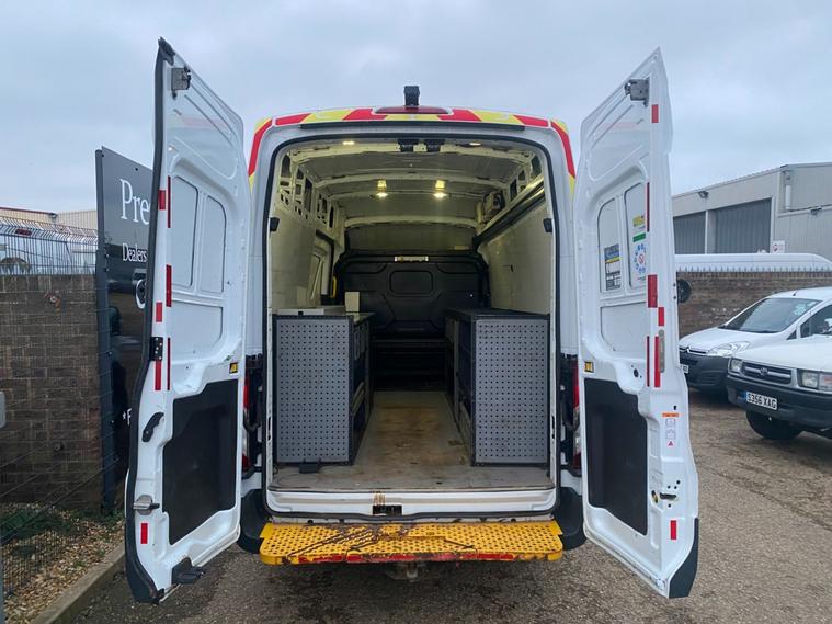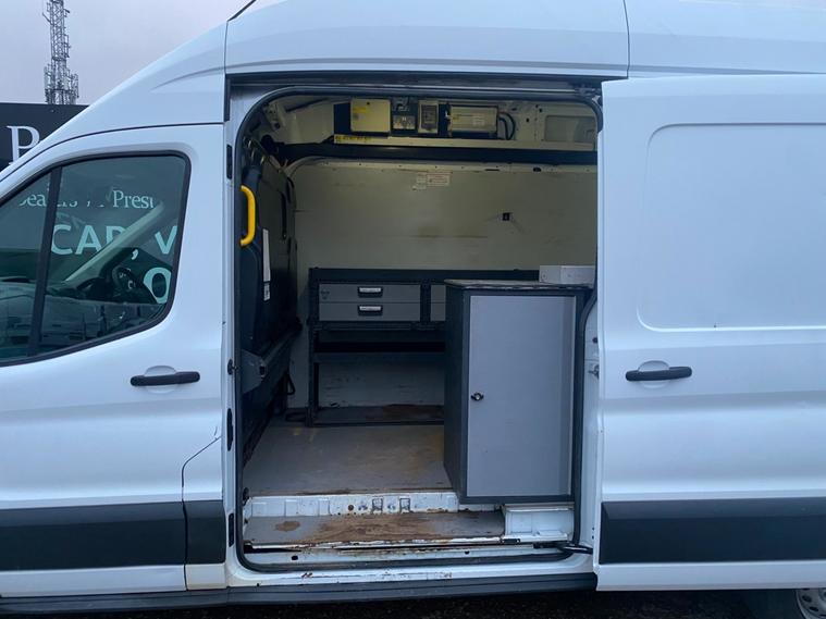 2014 64reg FORD TRANSIT 350 LONG WHEEL BASE HI ROOF L3H2 PANEL VAN COVERED 120375 MILES. BEEN OWNED BY NATIONAL GRID FROM NEW. BEEN SUPERBLY MAINTAINED AND LOOKED AFTER. CURRENT MOT VALID TILL 21/08/2026 WITH NO ADVISORIES, FULL 12 MONTHS MOT UPON SALE ALONG WITH FULL SERVICE USING GENUINE FORD FILTERS AND OIL. 6 MONTHS NATIONWIDE PARTS AND LABOUR WARRANTY. FULL COLOUR REAR CAMERA. TOWBAR WITH LARGE REAR STEP PLATFORM. HEAVY DUTY 1000WATT POWER INVERTER WITH TWIN SOCKET. PASSENGER AIRBAG. BRIGHT POWERFUL WORK AREA LIGHTING. HEATED FRONT SCREEN. 3 SEATER CAB. 2.2 TDCI 125 BHP CHAIN DRIVEN ENGINE WITH 6 SPEED MANUAL GEARBOX REAR WHEEL DRIVE. DRIVES LOVELY. HIGH SECURITY TWIN DEADLOCKS TO REAR DOORS. BLUETOOTH TELEPHONE AND AUDIO INTEGRATION. USB AUX IN MUSIC MEDIA CONNECT. SIDE LOADING DOOR. TWIN REAR WRAPAROUND DOORS. STANDARD VAN TAX BAND 12 MONTHS PRICED 345 POUNDS. HIGH VIS REAR SAFETY CHEVRONS, REAR SHELVING STORAGE DRAWER BENCH UNITS (CAN ALL BE REMOVED BY US IF REQUIRED). HARD PLASTIC EASY CLEAN FLOORING TO CAB. FRONT ARMREST. FOLD DOWN TABLE CENTRE TRAY. MULTIFUNCTION STEERING WHEEL. FULL SIZE BULKHEAD LOAD AREA SEPERATOR. OVERHEAD STORAGE. UNDERSEAT STORAGE. 3500 KG GROSS VEHICLE WEIGHT. 2298kg UNLADEN MASS. 1202KG PAYLOAD CAPACITY. 2800KG TOWING CAPACITY. CHOICE OF TRANSITS ALWAYS IN STOCK.