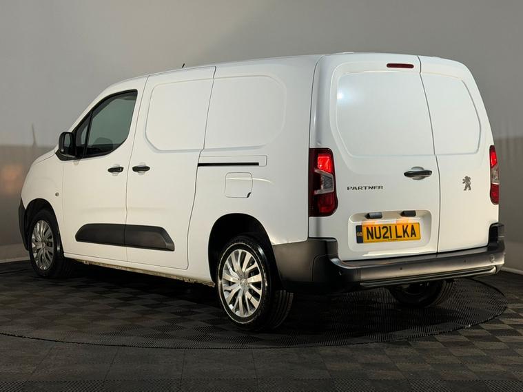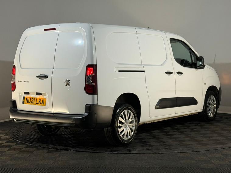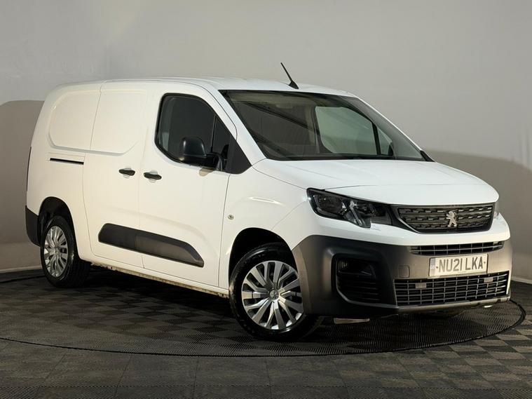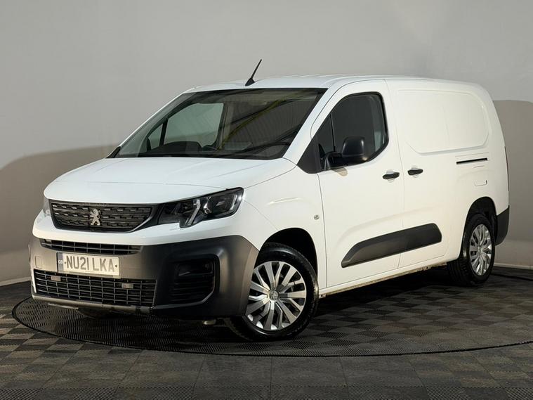 2021 Peugeot Partner Professional L2 BlueHDi 1.5 diesel LWB long panel van finished in white and offered by Noahs Automotive Ltd in Nuneaton. This low mileage practical and highly efficient long wheelbase panel van combines spacious load area strong diesel performance and professional specification making it an outstanding choice for trades small businesses or anyone seeking reliability versatility and low running costs. The economical one point five litre BlueHDi diesel engine produces 101 BHP delivering smooth performance relaxed cruising and composed handling in all conditions. With 1 previous owner full service history and cambelt done in 2025 it offers excellent peace of mind and long term reliability. MOT is valid until February two thousand and twenty seven. The high specification Professional trim includes sixteen inch wheels rear parking sensors rear sliding doors plywood rear lining three seats stop start technology air conditioning cruise control Peugeot CD DAB AM FM stereo system touch screen digital display Bluetooth audio and telephone Apple CarPlay and Android Auto automatic lights electric mirrors adjustable steering column electric park brake and six speed manual gearbox. Supplied with two keys and V5 logbook present this well equipped Peugeot Partner represents superb value in the LWB panel van market offering carrying capacity efficiency and everyday usability. Viewings are available seven days a week including evenings by appointment with same day drive away possible and nationwide delivery arranged in twenty four to seventy two hours. Part exchanges are welcome with fast fair and transparent valuations offered. Contact Noahs Automotive Ltd today to reserve this vehicle arrange a viewing or request further details including HD photos or live video walkarounds.