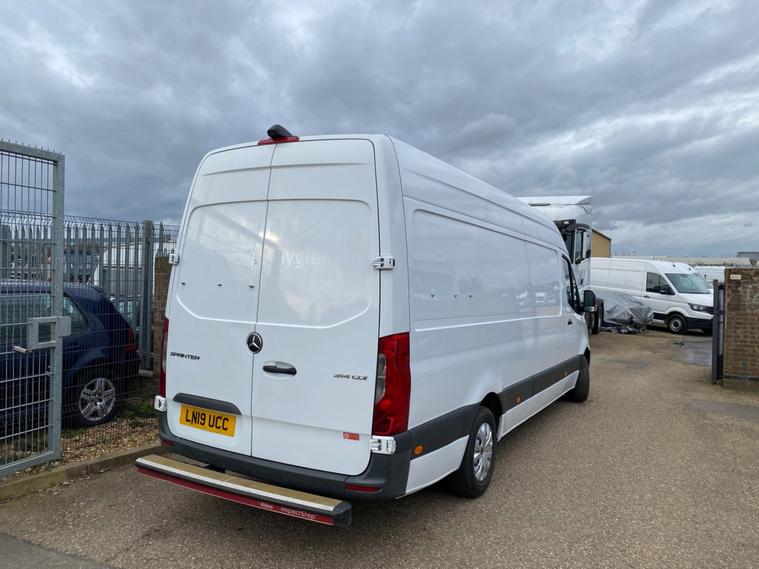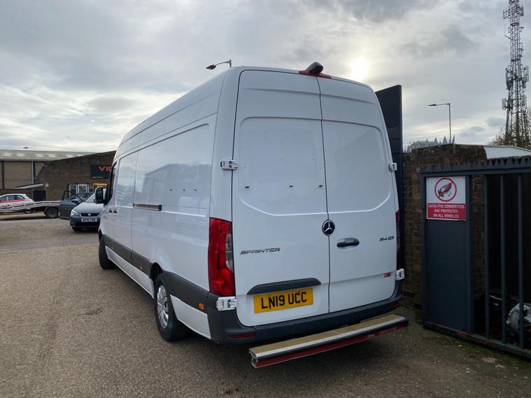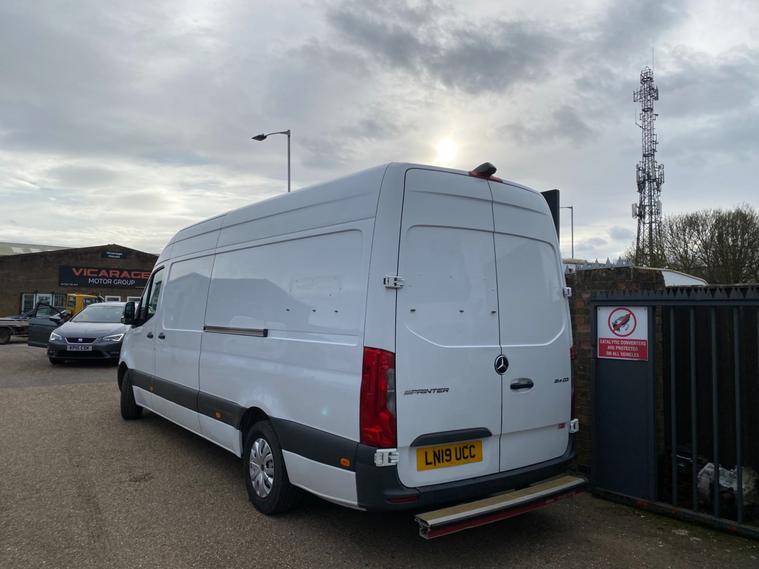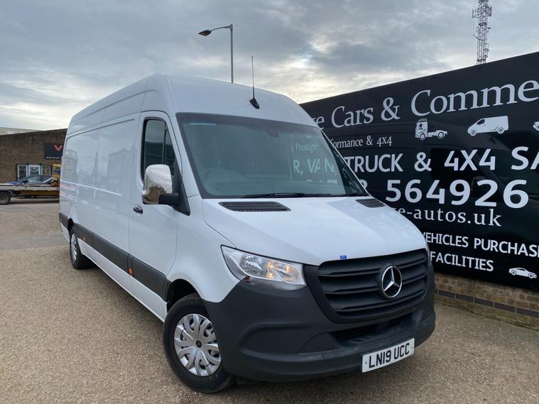 2019 19reg MERCEDES SPRINTER LWB LONG WHEEL BASE HI ROOF PANEL VAN COVERED 84643 GENUINE MILES. 2.1 CDI 143 BHP TURBO DIESEL WITH 6 SPEED GEARBOX REAR WHEEL DRIVE. 1 LAUNDRY COMPANY OWNER FROM NEW WITH FULL MERCEDES MAIN VAN DEALER SERVICE HISTORY. LAST SERVICED AT 68306 MILES. CURRENT MOT VALID TILL 10/04/2026. WILL BE GIVEN FRESH SERVICE WITH GENUINE MERCEDES FILTERS AND OIL ALONG WITH 12 MONTHS MOT UPON SALE. 6 MONTHS NATIONWIDE PARTS AND LABOUR WARRANTY. ONLY BEEN USED TO TRANSPORT COMMERCIAL LINENS SO NOT HAD HARD LIFE. PLASTIC LINED AND INSULATED REAR LOAD AREA WITH FULLY SEALED FLOOR. VERY WELL LOOKED AFTER HENCE DRIVES SUPERB. FACTORY FITTED FULL COLOUR REAR VIEW CAMERA. REAR SAFE-T BAR STEP. CRUISE CONTROL. 2X FULL REMOTE KEYS. ACTIVE BRAKE ASSIST. DAB DIGITAL RADIO. ANTI THEFT DOUBLE LOCKING. BLUETOOTH TELEPHONE+AUDIO INTEGRATION. USB AUX IN MUSIC INTERFACE. DAYTIME RUNNING LIGHTS. ADAPTIVE BRAKE LIGHTS. STANDARD ROAD TAX BAND 12 MONTHS PRICED 345 POUNDS. 3500KG GROSS VEHICLE WEIGHT. 2411KG UNLADEN WEIGHT. 1089KG PAYLOAD CAPACITY. 2000 KG TRAILER PULL CAPACITY. 5500 KG TRAIN WEIGHT. SUPERB ECONOMY, BEST IN CLASS. HILL START ASSIST. CROSSWIND ASSIST. SHIFT POINT INDICATOR. OVERHEAD STORAGE SHELVING TO CAB. UNDERSEAT STORAGE. 3 SEATER CAB. CUP HOLDERS. SIDE MARKER LIGHTS. 65mph speed limiter (can be removed by us). Bluetooth connection, Cruise control, PAS, Service indicator, Steering wheel mounted controls, Trip computer, Auxiliary input socket, Mobile phone App interface, OEM sound system, USB/iPod interface, Front electric windows, Front head restraints, Solid Paint, ABS, Drivers airbag, ESP, Traction control, Alarm, Immobiliser, Remote central locking, Cloth seat trim. GREAT VALUE FOR MONEY LATE MODEL SPRINTER WITH RARE LOW MILES. DRIVES LOVELY. NICE RELIABLE VEHICLE. CHOICE OF HAND PICKED QUALITY USED VANS IN STOCK NOW. CHOICE OF MERCEDES SPRINTERS ALWAYS IN STOCK.