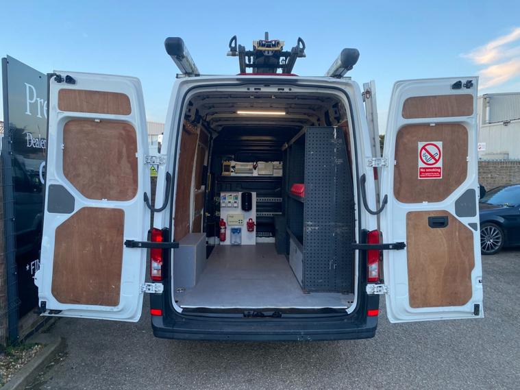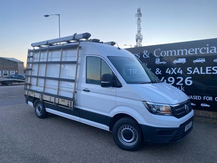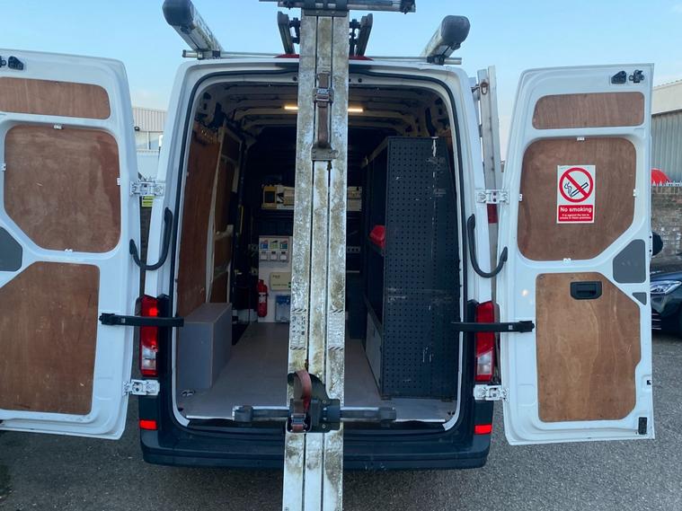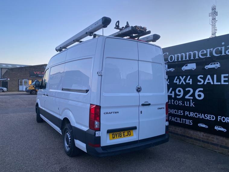 2018 18reg VW CRAFTER CR35 3.5 TONNE 2.0 TDI 140 BHP TURBO DIESEL BLUEMOTION 6 SPEED MWB L2H2 GOOD SPEC PANEL VAN COVERED 129732 MILES BY 1 COUNCIL OWNER FROM NEW. FULL VW MAIN VAN DEALER SERVICE HISTORY. SUPERBLY MAINTAINED AND LOOKED AFTER. JUST HAD MAJOR SERVICE WITH NEW BATTERY AND GLOW PLUGS BY VW MAIN VAN DEALER AT 128916 MILES ON 20/01/2026. CURRENT MOT VALID TILL 03/04/2026. FULL 12 MONTHS MOT UPON SALE. 6 MONTHS NATIONWIDE PARTS AND LABOUR WARRANTY. STANDARD VAN TAX BAND 12 MONTHS PRICED 345 POUNDS.10 FOOT / 3.05 METRE LONG X 6 FEET / 1.85 METRE HIGH PROFESSIONAL ALUMINIUM GLAZING / SHEETING RACK WITH RUBBER CUSHIONS. RHINO PROFESSIONAL EASY LOAD DROP DOWN ROOF LADDER RACK WITH TWIN PIPE LENGTHS TUBE CARRIERS. REAR STORAGE SHELVING STORAGE UNITS. 1000W HEAVY DUTY POWER INVERTER WITH TWIN POWER SOCKET. SOLID CANDY WHITE PAINTWORK. SUPERB ECONOMY 40+MPG ON A RUN. HIGH SECURITY DEADLOCKS. SPARE KEYS. AIR CON. FRONT ASSIST. PARKING SENSORS FRONT AND REAR. BLUETOOTH TELEPHONE & AUDIO CONNECTIVITY. SD CARD AUX IN USB MUSIC MEDIA CONNECT. ELEC HEATED MIRRORS. ELEC WINDOWS. REMOTE CENTRAL LOCKING. FULL SIZE FACTORY FITTED BULKHEAD. PLYLINED IN REAR WITH WOOD FLOOR. OVERHEAD STORAGE TO CAB. UNDERSEAT STORAGE. DRIVES BEAUTIFULLY. 180 DEGREE OPENING REAR DOORS. REALLY NICE WELL LOOKED AFTER VAN. DRIVES BEAUTIFULLY. 3000KG TRAILER PULL CAPACITY. UNLADEN WEIGHT 2089KG. 1411KG PAYLOAD CAPACITY. FULL SIZE SPARE WHEEL. DECENT AVON TYRES ALL ROUND. 3.48 METRE / 11 FEET 5 INCHES INTERNAL LOAD LENGTH. CHOICE OF QUALITY USED HAND PICKED COMMERCIALS IN STOCK NOW. CHOICE OF PANEL VANS, TIPPERS, DROPSIDES, LUTONS, PICK UP'S, CREW CABS, SINGLE CABS ALL IN STOCK NOW. FOR MORE PICTURES AND TO VIEW FULL STOCKLIST PLEASE VISIT DEALER WEBSITE.