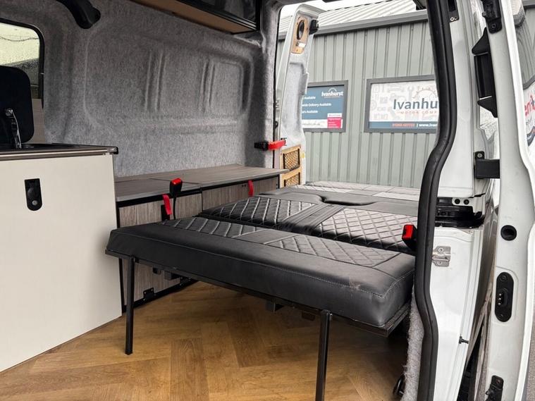 NO VAT, READY TO GO CAMPER CONVERSION. SPEC INCLUDES: Sony DAB BT Audio screen with reverse camera, Leather seat covers, rock n roll bed with two seat belts, Rotating front seats, dual gas burner, sink, three plug outlet, leisure battery with mains hookup and upgraded sound system. All carried out to a great standard. Ivanhurst Motor Company is an independently owned and ran car and van dealership conveniently based in central Essex. Every one of our vehicles undergoes a 108 point pre delivery inspection to check items such as; Brakes Tyres, Lights and Fluid Levels. If a van has less than 6 months MOT, we put a new MOT on the vehicle. All vans are supplied with a fresh oil service. We give a 3 month / 3000 mile warranty on all commercial vehicles. Need vehicle finance? Not a problem. Ivanhurst has direct links to Close Motor Finance, Oodle Finance and our broker - Finset, who are able to cater for the whole spectrum of credit ratings and can even finance a vehicle with £0 deposit! We really hope breaking down what we do as a business gives you peace of mind when choosing us to supply your new vehicle. We appreciate it can be a daunting prospect, call us to discuss your requirements. It is our job to assist, advise and help you. Terms and conditions apply please visit our website for details..15in Steel Wheels, 4-way Adjustable Drivers Seat with Armrest, ABS - Anti-lock Braking System, AM-FM Radio with USB - Bluetooth - Emergency Assistance, DIN-ISO Compliant Metal Bulkhead with Load Through Hatch, Doors - Unglazed Rear, Drivers Airbag, ESC - Electronic Stability Control, Electric Windows - Front, ICE Pack 12 - Single DIN Sized Audio Unit, Passenger Side Sliding Load Door with Track Cover, Power Assisted Steering, RSC - Roll Stability Control, Remote Central Door Locking with Deadlocks, Side Wind Mitigation, Spare Wheel - Conventional, Steering Column - Rake and Reach Adjustment, Tinted Glass Complete, Trip Computer, Two 12V Power Socket