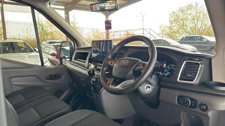 This 2024 Ford Transit van, a single owner vehicle, offers exceptional value and capability. It is powered by a 2.0 litre EcoBlue diesel engine, meeting Euro 6 emission standards, and features rear wheel drive. The Limited trim level ensures a well equipped experience, with notable features including wide opening rear cargo doors with magnetic retention, a digital rear view mirror with parking assistance and a rear camera, and door mirrors with blind spot eliminators and integrated side indicators, incorporating Blind Spot Assistance.This Transit boasts an impressive cargo volume of 14100 litres, providing ample space for your business needs. The 12 inch touchscreen with the new SYNC 4 system, compatible with Android Auto and Apple CarPlay, keeps you connected and entertained. For comfort, it includes semi automatic air conditioning with climate control. With a towing weight of 2570 kg, this van is ready for a variety of tasks, demonstrating its superior versatility compared to other similar vehicles.