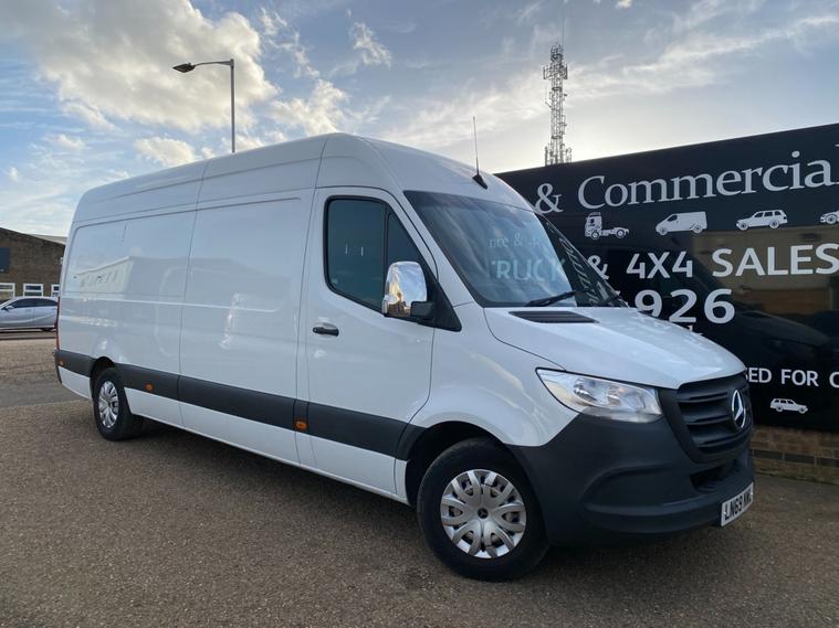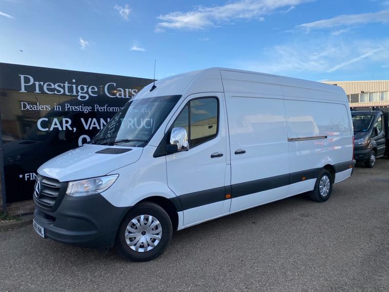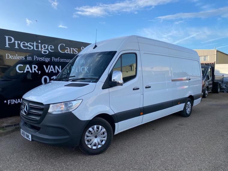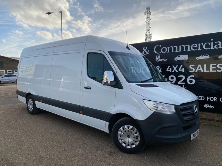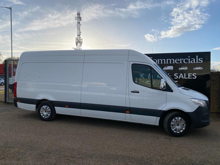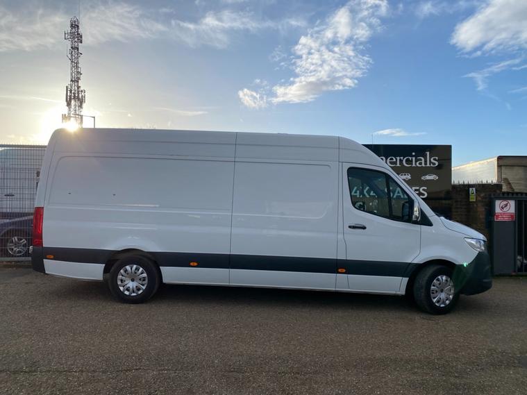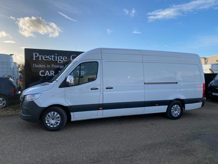2019 69reg MERCEDES SPRINTER LWB LONG WHEEL BASE HI ROOF PANEL VAN COVERED 92450 GENUINE MILES. 2.1 CDI 143 BHP TURBO DIESEL WITH 6 SPEED GEARBOX REAR WHEEL DRIVE. 1 LAUNDRY COMPANY OWNER FROM NEW WITH FULL MERCEDES MAIN VAN DEALER SERVICE HISTORY. JUST BEEN FULLY SERVICED UP TO DATE WITH GENUINE MERCEDES FILTERS AND OIL. CURRENT MOT VALID TILL 14/09/2026. WILL BE GIVEN FULL 12 MONTHS MOT UPON SALE. 6 MONTHS NATIONWIDE PARTS AND LABOUR WARRANTY. ONLY BEEN USED TO TRANSPORT COMMERCIAL LINENS SO NOT HAD HARD LIFE. PLASTIC LINED AND INSULATED REAR LOAD AREA WITH FULLY SEALED FLOOR. VERY WELL LOOKED AFTER HENCE DRIVES SUPERB. CRUISE CONTROL. ACTIVE BRAKE ASSIST. DAB DIGITAL RADIO. ANTI THEFT DOUBLE LOCKING. BLUETOOTH TELEPHONE+AUDIO INTEGRATION. USB AUX IN MUSIC INTERFACE. DAYTIME RUNNING LIGHTS. ADAPTIVE BRAKE LIGHTS. STANDARD ROAD TAX BAND 12 MONTHS PRICED 345 POUNDS. 3500KG GROSS VEHICLE WEIGHT. 2413KG UNLADEN WEIGHT. 1087KG PAYLOAD CAPACITY. 2000 KG TRAILER PULL CAPACITY. 5500 KG TRAIN WEIGHT. SUPERB ECONOMY, BEST IN CLASS. HILL START ASSIST. CROSSWIND ASSIST. SHIFT POINT INDICATOR. OVERHEAD STORAGE SHELVING TO CAB. UNDERSEAT STORAGE. 3 SEATER CAB. CUP HOLDERS. SIDE MARKER LIGHTS. Bluetooth connection, Cruise control, PAS, Service indicator, Steering wheel mounted controls, Trip computer, Auxiliary input socket, Mobile phone App interface, OEM sound system, USB/iPod interface, Front electric windows, Front head restraints, Solid Paint, ABS, Drivers airbag, ESP, Traction control, Alarm, Immobiliser, Remote central locking, Cloth seat trim. GREAT VALUE FOR MONEY LATE MODEL SPRINTER WITH RARE LOW MILES. DRIVES LOVELY. NICE RELIABLE VEHICLE. CHOICE OF HAND PICKED QUALITY USED VANS IN STOCK NOW. CHOICE OF MERCEDES SPRINTERS ALWAYS IN STOCK.