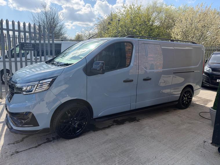 2023 Renault Trafic Sport+ LWB Bespoke EditionFinished in Cumulus Blue, one of the best colours available, this very low mileage example has been upgraded with our full bespoke styling package giving it a much stronger road presence than a standard Trafic.With just 16, 000 miles, one owner plus supplying dealer, 2 keys, just been serviced and still under manufacturers warranty, this is a very clean example throughout.Key Details:16, 000 milesLWB6 speed manual1 owner plus supplying dealer2 keysService historyTowbarJust servicedManufacturers warranty remainingSport+ High Spec:Air conditioningNavigationReverse cameraParking sensorsCruise controlAuto LED lights with DRLsFront fog lightsElectric windowsElectric mirrorsDAB radioBluetoothHeated front screenPark Vans Bespoke Styling:Fully colour codedFront splitterRoof spoilerRoof barsSide stepsNew 20 inch alloy wheelsFull de-chromed styling with gloss black grilles and badgeNew ply lining fittedA very clean example throughout and ready to drive away.£27, 995.00 On The Road No VAT or £130 per week with a 10% depositFinance availableUK delivery availableWalk round video availableReserve for £100Bespoke styling can be tailored to suit