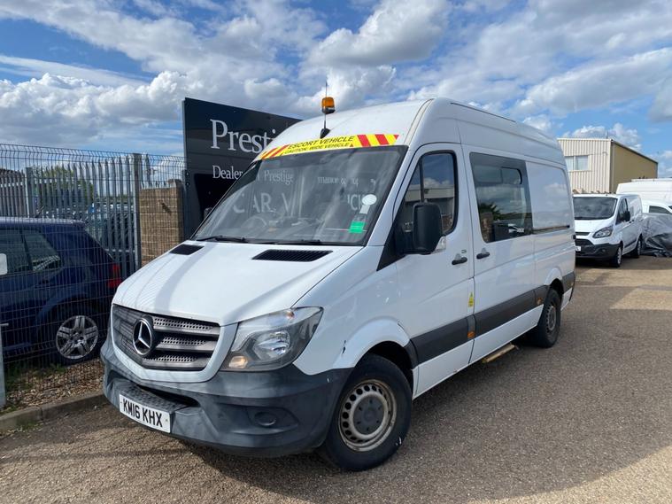 2016 16 REG MERCEDES SPRINTER 313 CREW VAN 9 SEATER MPV SPLITTER VAN MINIBUS COVERED 108028 GENUINE MILES. NICE EXAMPLE 3.5 TONNE MWB NON AD BLUE ULEZ+LEZ CLEAN AIR ZONE COMPLIANT LEGENDARY SPRINTER MWB MEDIUM WHEEL BASE HI ROOF PANEL VAN. 2.1 CDI 130 BHP TURBO DIESEL WITH 6 SPEED GEARBOX. 1 COUNCIL OWNER FROM NEW WITH SERVICE HISTORY. BEEN INSPECTED EVERY 6 WEEKS SO MAINTAINED WITH NO EXPENSE SPARED, SUPERBLY MAINTAINED AND LOOKED AFTER HENCE DRIVES BEAUTIFULLY. CURRENT MOT VALID TILL 23/10/2026 WITH NO ADVISORIES, FULL 12 MONTHS MOT UPON SALE. LAST SERVICED AT 106668 MILES. 6 MONTHS NATIONWIDE PARTS AND LABOUR WARRANTY. SPLIT REAR LOAD AREA WITH SHELVING STORAGE UNIT. CREW AREA LED LIGHTING. OPENING VENT SUNROOF. OPENING SIDE VENT WINDOWS. CRUISE CONTROL. REAR LOAD AREA STORAGE SHELVING. BLUETOOTH TELEPHONE+AUDIO INTEGRATION. USB AUX IN MUSIC INTERFACE. DAYTIME RUNNING LIGHTS. ADAPTIVE BRAKE LIGHTS. SUPERB ECONOMY, BEST IN CLASS. HILL START ASSIST. CROSSWIND ASSIST. SHIFT POINT INDICATOR. OVERHEAD STORAGE ABOVE CAB. UNDERSEAT STORAGE. CUP HOLDERS. SIDE MARKER LIGHTS. SIDE LOADING DOOR. TWIN REAR DOORS WITH 270 DEGREE WRAPAROUND OPENING. 3.665 METRE WHEELBASE. 3500 KG GROSS VEHICLE WEIGHT. 2261KG UNLADEN WEIGHT. 2800KG TRAILER PULL CAPACITY. 6300KG TRAIN WEIGHT. 72MPH SPEED LIMITER (CAN BE REMOVED BY US IF REQUIRED). PERFECT BASE VEHICLE FOR CAMPER DAY LESIURE VAN CONVERSION. VAN HAS JUST ARRIVED, WILL BE GIVEN FULL VALET AND NEW TO SET OF PICS TO FOLLOW. CHOICE OF HAND PICKED QUALITY USED VANS IN STOCK NOW. CHOICE OF MERCEDES SPRINTERS ALWAYS IN STOCK.