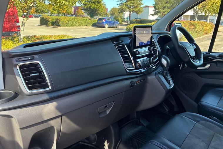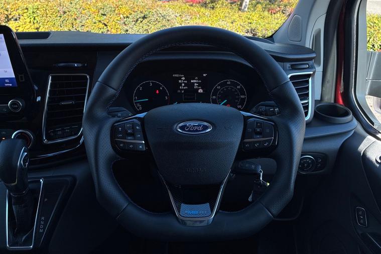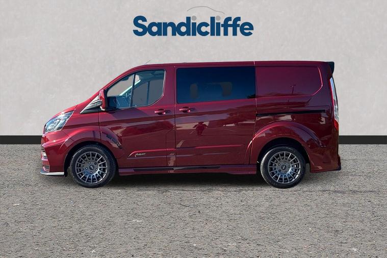 Ford Transit Custom MSRT IN STOCK. NO VAT!!! MS-RT is a specialist vehicle modifier that partners with Ford to create high-performance, rally-sport-inspired versions of their commercial vehicles. The Ford Transit Custom MS-RT is the most common model. Key features of an MS-RT model typically include: Aggressive Body Styling: A unique, motorsport-inspired body kit with a redesigned front bumper, wide arch extensions, and a rear spoiler/diffuser. Performance Look: Exclusive alloy wheels (often Anthracite), MS-RT blue brake calipers, and a sporty stance. Upgraded Interior: Hand-crafted interior with features like Eco-Leather and suede upholstery, bespoke sports seat bolsters, and a heated sports steering wheel. Enhanced Driving: Often includes sport suspension modifications for improved handling
