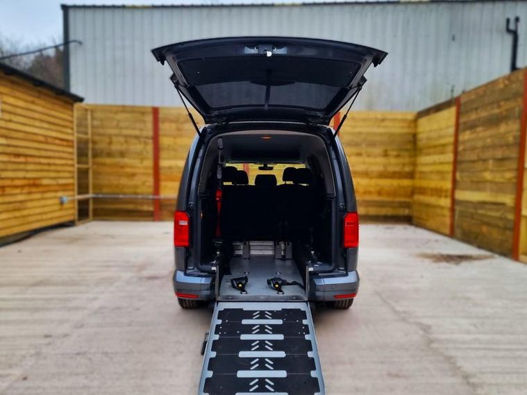 This Lewis Reed converted Volkswagen Caddy Wheelchair Accessible Vehicle (WAV) has 5 Seats (2 Front and 3 Rear). Equipment includes Wheelchair Ramp, Air Conditioning, Electric Front Windows, Electric Adjustable Wing Mirrors, Power Steering, Remote Central Locking, Tinted Rear Windows, Front and Rear Parking Sensors.