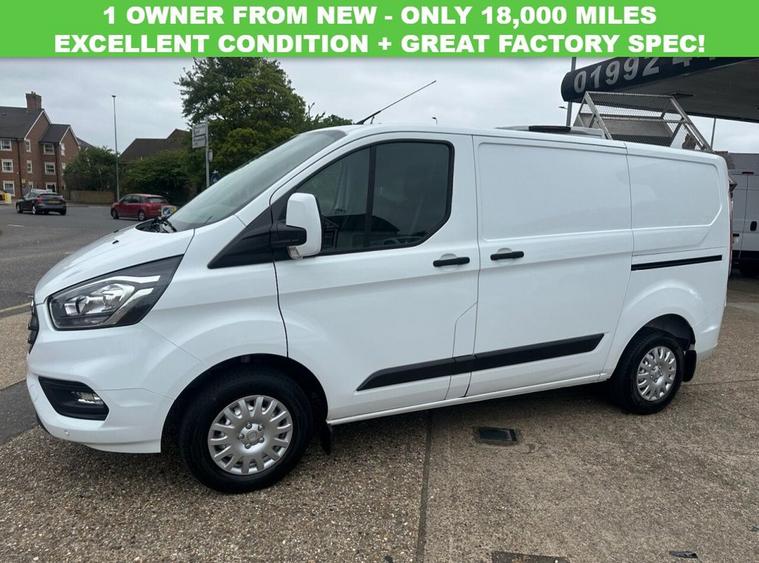 HERTS MOTORS VAN SALES ARE PLEASED TO OFFER FOR SALE THIS FORD TRANSIT CUSTOM - TREND L1 SHORT WHEELBASE. RAPTOR STYLE FRONT GRILLE FITTED 2021 ( 71 REGISTERED ) - ONLY 18, 000 MILES AND 1 OWNER FROM NEW - JUST BEEN SERVICED & MOTD READY FOR SALE. IMMACULATE CONDITION - FULLY PLY LINED READY FOR WORK THIS VAN HAS APPLE CAR PLAY - ANDROID AUTO - FORD SYNC 3 - SAT NAV - CRUISE CONTROL - PARKING SENSORS FRONT & REAR - DAB RADIO - BLUETOOTH - ELECTRIC WINDOWS AND MIRRORS & MORE. 2.0 LITRE DIESEL EURO 6 - 6 SPEED GEARBOX. TO RESERVE PLEASE CALL DAN OR RESERVE REMOTLEY ON OUR WEBSITE FINANCE IS AVAILABLE - PART EXCHANGES ARE WELCOME AND RAC WARRANTY IS INCLUDED.
