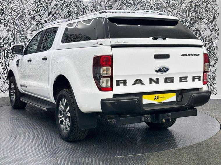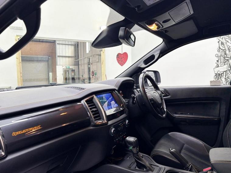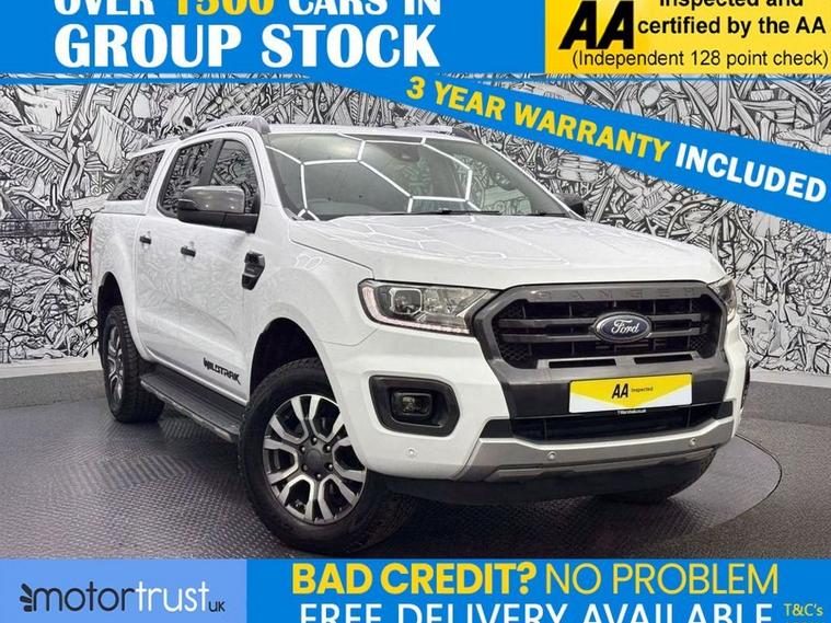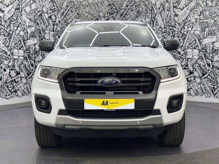 Dominate any terrain with rugged style in this 2022 Ford Ranger 2.0 EcoBlue Wildtrak Pickup Double Cab in crisp Frozen White. Powered by a commanding 213 ps 2.0-litre EcoBlue diesel engine, this Euro 6-compliant automatic 4WD delivers robust performance and exceptional towing capability, perfect for demanding work, off-road adventures, or heavy-duty tasks. With 85, 000 miles, a single owner, 2 keys, and full Ford service history, this 4-door pickup ensures reliability and a meticulously maintained pedigree. Navigate confidently with the Navigation HDD system, featuring an 8-inch touchscreen for precise, reliable directions, saving time and reducing stress on job sites or remote trails. Front and rear parking sensors make manoeuvring this powerful pickup effortless, enhancing safety in tight spaces or busy lots. Air conditioning maintains a cool, comfortable cabin, ideal for long hauls or warm days, ensuring driver and passengers stay refreshed. Striking alloy wheels and a full-size alloy spare elevate the Ranger's bold, muscular design, enhancing handling and preparedness while adding a premium aesthetic. A load liner and hard top protect the bed and secure cargo, ensuring durability and security for heavy-duty tasks, while a tow bar adds versatility for trailers, boats, or equipment. The spacious double cab offers a refined, tech-savvy interior with heated seats and Wildtrak styling, blending work-ready toughness with comfort, ideal for tradespeople, adventurers, or those needing a versatile pickup. With its high-spec features, including a hard top and tow bar, and sleek Frozen White finish, this Ford Ranger Wildtrak delivers exceptional value. Contact us today to arrange a viewing and experience its commanding presence firsthand!