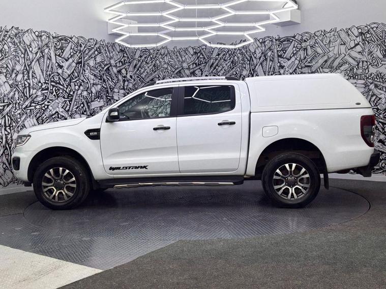 Conquer any task with bold capability in this 2019 Ford Ranger 3.2 TDCi Wildtrak Pickup Double Cab in striking Frozen White. Powered by a commanding 200 ps 3.2-litre diesel engine, this Euro 6-compliant manual 4WD delivers robust performance and exceptional towing power, perfect for demanding work, off-road adventures, or heavy-duty hauling. With 64, 000 miles and a single owner, this 4-door pickup ensures reliability and rugged appeal. Navigate effortlessly with the Navigation HDD system, featuring an 8-inch touchscreen for precise, reliable directions, saving time on job sites or remote trails. The fixed rear view camera and parking sensors make maneuvering this powerful pickup seamless, enhancing safety in tight spaces or busy lots. Dual-zone temperature control and air conditioning maintain a comfortable cabin, ideal for long hauls or warm days, keeping driver and passengers refreshed. The part-leather Ebony Journey Grain trim elevates the interior with a premium, durable finish, blending style and comfort. Stylish 18 alloy wheels in Boulder Grey with a machined finish enhance the Ranger's muscular design, improving handling and turning heads, while a full-size alloy spare ensures preparedness for tyre issues. A load box bedliner and hard top protect and secure cargo, offering durability for tough tasks, and the tow pack with tow bar adds versatility for trailers or equipment. Power points and dual controls enhance functionality, catering to professional needs. The spacious double cab combines Wildtrak's rugged styling with a tech-savvy interior, making it ideal for tradespeople, adventurers, or those needing a versatile pickup. With high-spec features like a rear view camera, tow pack, and hard top, and a solid Frozen White finish, this Ford Ranger delivers exceptional value. Contact us today to arrange a viewing and experience its commanding presence firsthand!