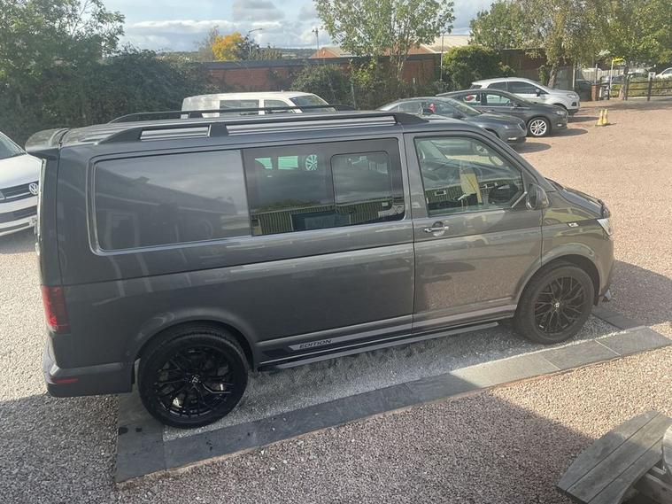 CHECK OUT THIS VAN AND THE EXTRAS!! 1 CAR COMPANY BUY WITH CONFIDENCE FROM A 5 STAR FAMILY RUN BUSINESS .. 1 CAR COMPANY ARE PLEASED TO PRESENT THIS SMART 2021 VOLKSWAGEN TRANSPORTER 2.0 TDI T30 Highline Kombi Double Cab 5dr Diesel Manual FWD SWB Euro 6 (s/s) (110 ps)! 6 seats package, 20 Black Edition Wolfrace Alloy Wheels, ABS Gloss Black Front Splitter, Black Roof Rails, Sportsline Side Bars, Gloss Black Tailgate Spoiler, Carbon Bumper Protector, Inside Full Kombi Carpet Set, Inside Rear Sides Carpeted, Roof in Alcantara, Full Highline Spec INC Heated Screen. Will come with a New MOT. New Service and a 6 Month Warranty wise Warranty. Service History: Serviced with VW Van Centre and Us now.