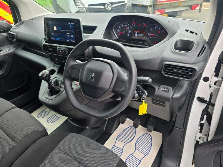 This 2022 Peugeot Partner is a superb example, having had only one owner from new. This BlueHDi 1000 Professional Premium Standard Panel Van SWB Euro 6 5dr is powered by an efficient 1.5 litre diesel engine, meeting Euro 6 emissions standards. Inside, youll find the innovative PEUGEOT i Cockpit featuring a head up display and a compact steering wheel, alongside an 8 inch capacitive colour touchscreen with Connect DAB Radio, Bluetooth handsfree and USB connectivity. For convenience and safety, it includes rear parking sensors, height adjustable halogen headlights with automatic illumination and daytime running lights, and air conditioning. This Partner boasts impressive practicality with a generous 3900 litres of cargo volume, making it ideal for business needs. Its fuel economy is a notable highlight, achieving up to 56 miles per gallon, which, combined with its low CO2 emissions, indicates a more economical and environmentally conscious choice compared to similar vehicles. Furthermore, its placement in a low insurance group suggests lower running costs, making this Peugeot Partner a smart and cost effective option.