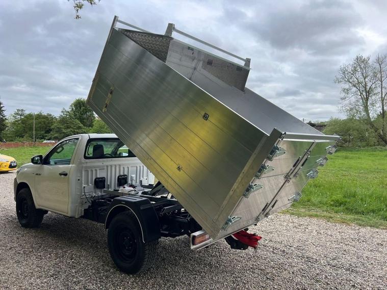 TOYOTA HILUX 2.4 D-4D ACTIVE 4 DOOR DOUBLE CAB TIPPER TRUCK ONLY DONE A WARRANTED 19799 MILES ONLY, PLEASE READ THE ADD THE ONE IN THE PICTURE IS A SINGLE CAB THE ONE BEING BUILT IS A DOUBLE CAB BUT HAS THE SAME ALLOY BODY, AIRCON, STEREO, ELECTRIC WINDOWS, CENTRAL LOCKING, FULL DEALER FACILITIES, PX CHANGE AND LOW RATE FINANCE AVAILABLE WITH NO DEPOSIT TO PAY, BEST PX CHANGE PRICES PAID WITH INSTANT DECISION, NATIONWIDE DELIVERY AVAILABLE, PLEASE NOTE THIS TRUCK IS DUE IN SOON ITS HAVING A BRAND NEW ALL ALLOY ARB HI SIDE TIPPING BODY FITTED THE SAME AS IN THE IMAGES WITH ROOF BARS, BUILT IN TOOL CHEST, AND A CHIP LID, PLEASE VIEW THE IMAGES, WILL BE THE SAME BUT THIS TRUCK IS A 4 DOOR DOUBLE CAB, DUE IN OCTOBER CAN BE RESERVED WITH A SMALL DEPOSIT