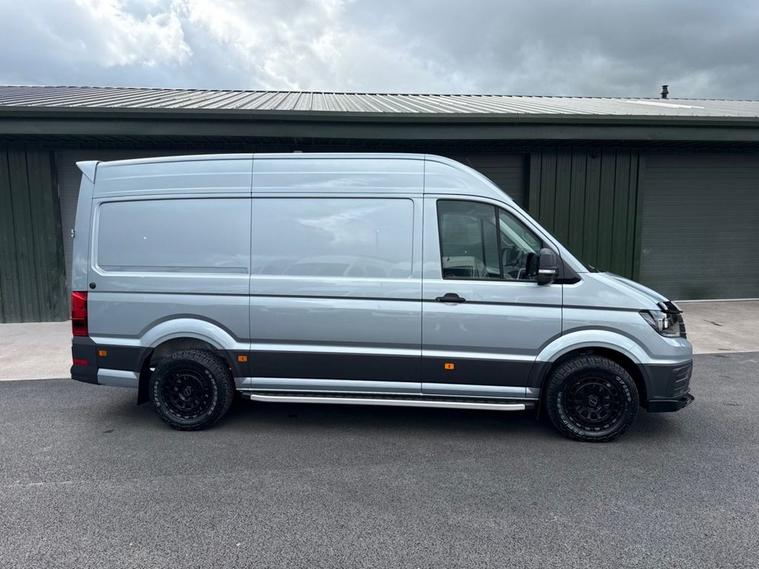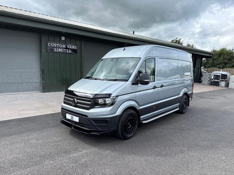 25 REG VOLKSWAGEN CRAFTER COMMERCE PLUS 8 SPEED AUTO MWB 2.0TDI BRAND NEW, 210 DELIVERY MILES, 2 KEYS, 3 YEARS WARRANTY AIR CONDITIONING, ELECTRIC WINDOWS, ELECTRIC HEATED MIRRORS, FRONT AND REAR PARK AID, BIG SCREEN, APPLE CAR PLAY, MULTI FUNCTION STEERING WHEEL, CRUISE CONTROL, CAPTIN DRIVERS SEAT, REVERSE CAMARA, HEATED WINDSCREEN. BRAND NEW 18 SWAMPER WHEELS WITH LOAD RATED TYRES, FRONT AND REAR RALLY FLAPZ, BUMPER PROTECTOR, FRONT SPLITTER, BONNET PROTECTOR, RUNNING BOARDS FULL V5 PRESENT 3 YEAR WARRANTY PART EXCHANGE WELCOME FINANCE AVAILABLE ALL MAJOR CARDS ACCEPTED FREE UK DELIVERY
