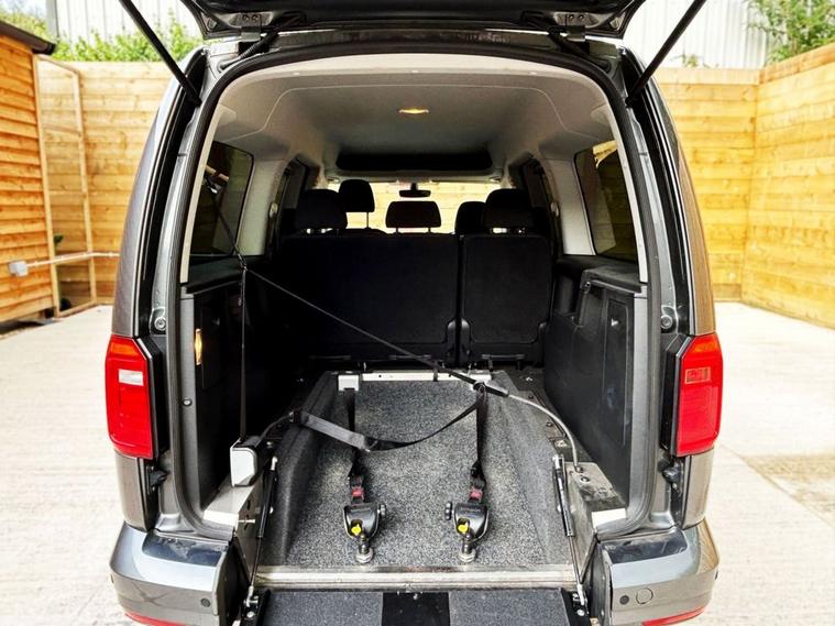 This Gowrings Mobility converted Volkswagen Caddy Wheelchair Accessible Vehicle (WAV) has 5 Seats (2 Front and 3 Rear). Equipment includes Wheelchair Ramp, Air Conditioning, Electric Front Windows, Electric Adjustable Wing Mirrors, Power Steering, Remote Central Locking, Tinted Rear Windows.