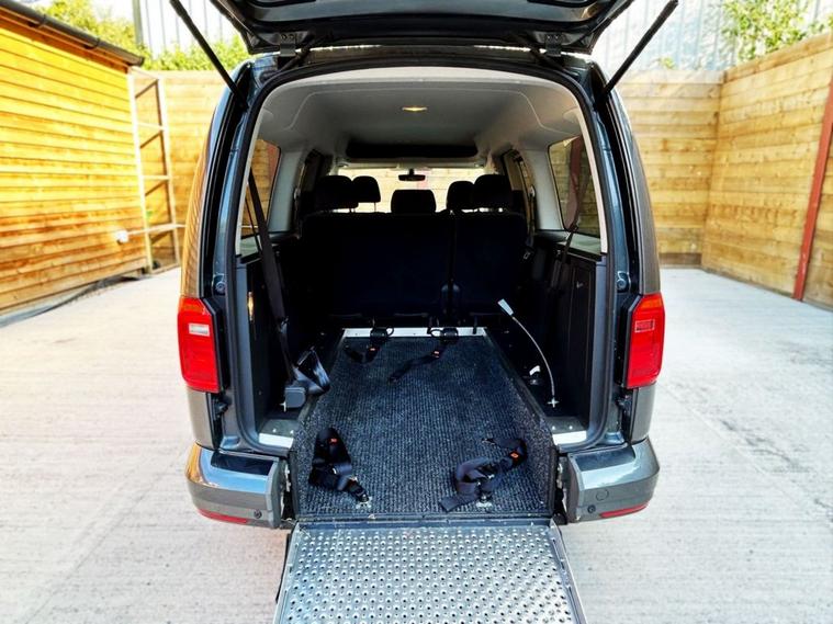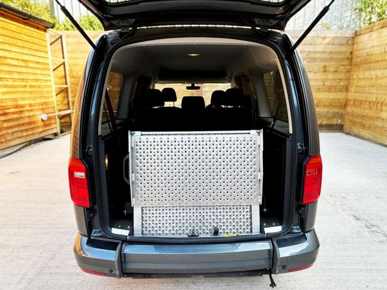 This Automotive Group converted Volkswagen Caddy Wheelchair Accessible Vehicle (WAV) has 5 Seats (2 Front and 3 Rear). Equipment includes Wheelchair Ramp, Air Conditioning, Electric Front Windows, Electric Adjustable Wing Mirrors, Power Steering, Remote Central Locking, Tinted Rear Windows.