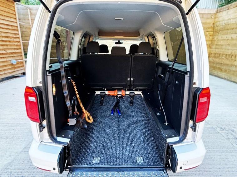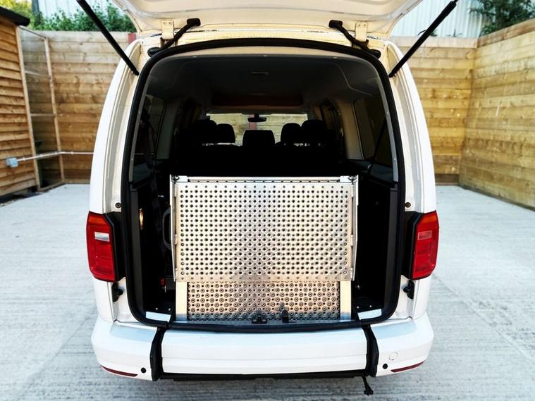 This Automotive Group converted Volkswagen Caddy Wheelchair Accessible Vehicle (WAV) has 5 Seats (2 Front and 3 Rear). Equipment includes Wheelchair Ramp, Electric Winch, Air Conditioning, Electric Front Windows, Electric Adjustable Wing Mirrors, Power Steering, Remote Central Locking, Tinted Rear Windows.