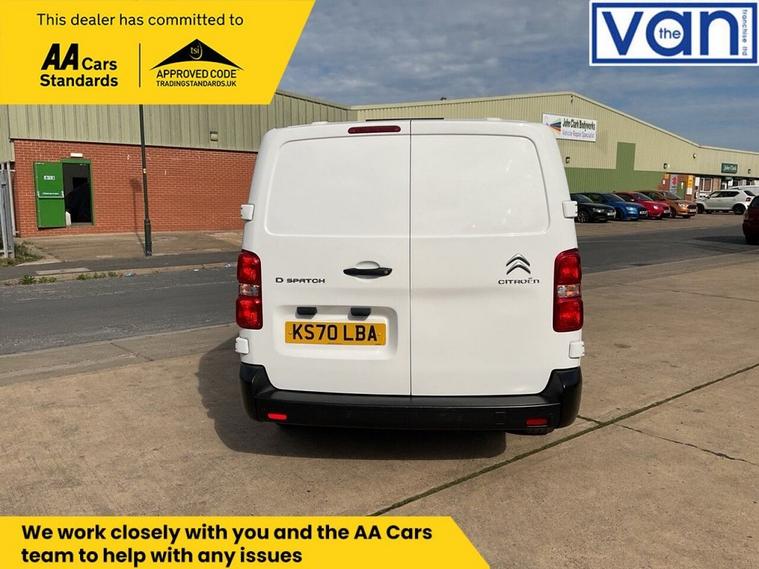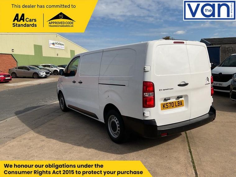 This 2020 Citroen Dispatch 1.5 BlueHDi 1200 Enterprise XL FWD 3 Euro 6 (s/s) 6dr. This reliable panel van is equipped with a 1.5 litre diesel engine and meets Euro 6 emissions standards. Inside, youll find essential comfort and convenience features including air conditioning and a 7in colour touchscreen with Citroen Connect DAB Radio, supporting Android Auto, Apple CarPlay, and Bluetooth connectivity. Parking is made easier with rear parking sensors, and the Visibility Pack ensures automatic headlights for enhanced safety. The Enterprise XL trim level provides a generous cargo volume of 6600 litres, making it an excellent choice for businesses needing substantial load space. Its low CO2 emissions also highlight its efficiency compared to similar vehicles, contributing to lower running costs. This Citroen Dispatch is a practical and well equipped option for a variety of commercial needs. The van will be Oil & filter serviced and health checked in our own workshops prior to collection and will also come with a minimum of 6 months MOT test. We also include a 3 months or 5000 miles parts and labour warranty whichever comes first as standard.