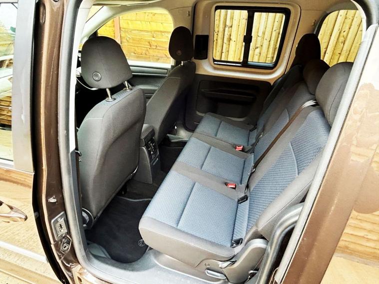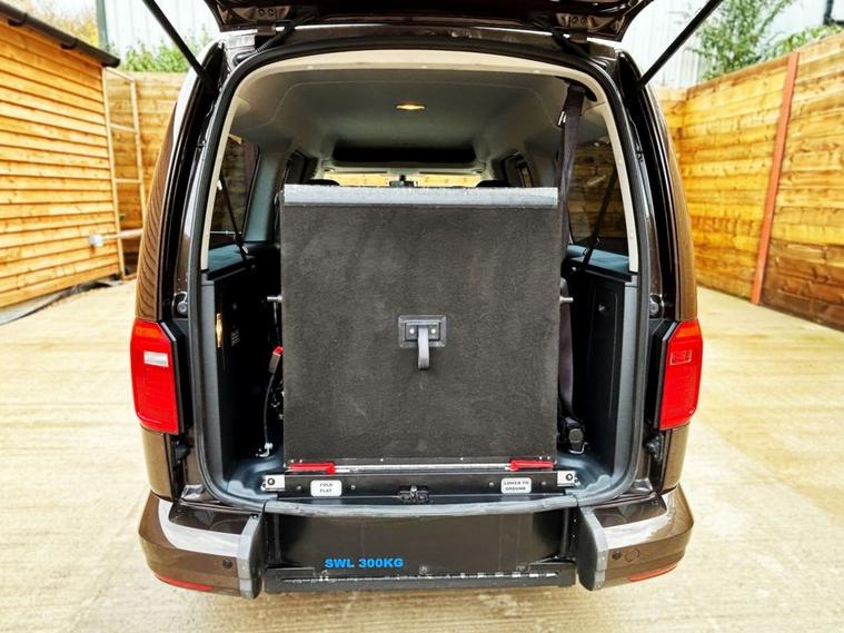 This Allied Mobility converted Volkswagen Caddy Wheelchair Accessible Vehicle (WAV) has 5 Seats (2 Front and 3 Rear). Equipment includes Fold Flat Wheelchair Ramp, Electric Winch, Air Conditioning, Electric Front Windows, Electric Adjustable Wing Mirrors, Power Steering, Remote Central Locking, Tinted Rear Windows.
