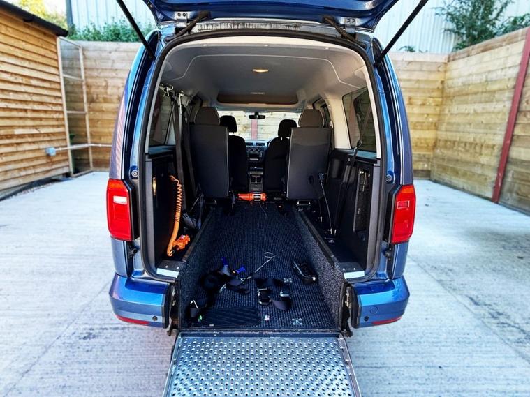 This Automotive Group converted Volkswagen Caddy Wheelchair Accessible Vehicle (WAV) has 4 Seats (2 Front and 2 Rear). Equipment includes Wheelchair Ramp, Electric Winch, Air Conditioning, Electric Front Windows, Electric Adjustable Wing Mirrors, Power Steering, Remote Central Locking, Tinted Rear Windows.
