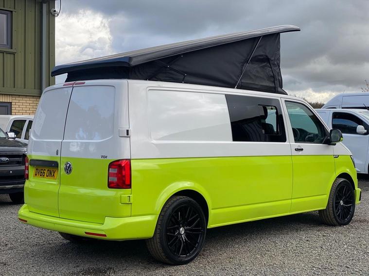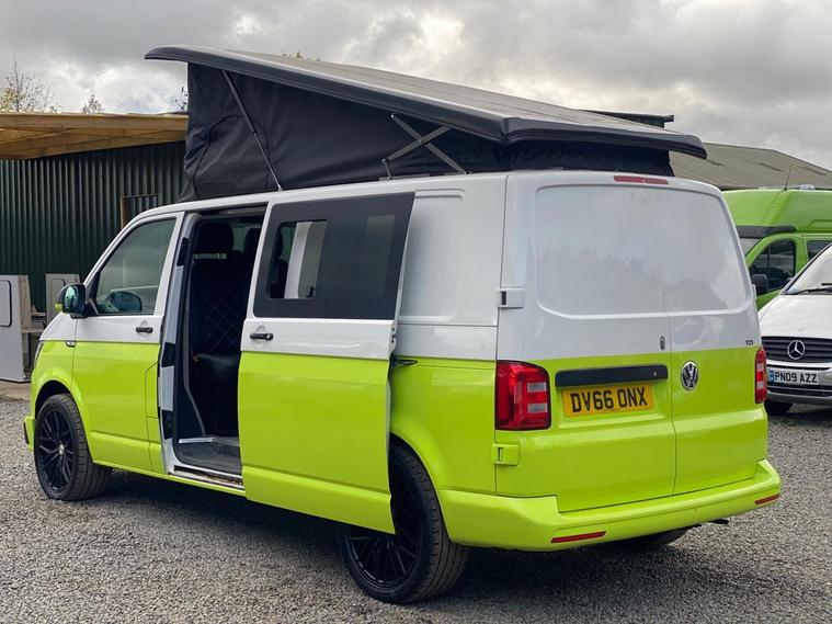 PODIUM PCL IS DELIGHTED TO PRESENT A VW TRASNPORTER MOTORHOME FRESHLY CONVERTED, 4 BERTH AND 5 SEAT BELTS, REAR SPACIOUS LOUNGE A ROCK & ROLL BED AND A POP UP ROOF FINSHED IN GLOSS BLACK, M1 THE VULCAN RECLINER 1100mm DOUBLE SEAT BED WITH QUICK RELEASE MECHANISM, HALF PAINTED IN ACID GREEN WHICH MAKE IT STANDS OUT, ALL ELECTRICAL CONNECTIONS DONE, 2 BURNER STOVE CONNECTION, LARGE SINK INSTALLED, WINDOWS, AMPLE STORAGE, JUST SERVICED, MOT VALID UNTIL 05/06/2026, 1 PREVIOUS OWNER, SERVICE HISTORY WITH 4 SERVICES. Step into the world of Podium PCL, where quality, trust, and expertise come together to create a refined vehicle-buying experience. We proudly showcase a wide selection of over 200 meticulously handpicked vehicles, including Cars, SUVs, Vans, Motorhomes, and Campervans. Each vehicle is carefully sourced by our expert purchasing team, backed by over 12 years of industry experience, and undergoes thorough checks to ensure the highest standards. All our vehicles are HPI clear and supported by the AA Dealer Promise, offering complete peace of mind with every purchase. Enjoy the added benefit of 12 months of complimentary AA breakdown cover, along with a 3-month warranty included within the advertised price, extendable up to 3 years for long-term reassurance. We also offer swift vehicle deliveryfree within a 60-mile radius and just £2 per mile thereafter (Scotland rates may vary). Once payment is received, we aim to deliver your vehicle within 48 hours. Visit Podium PCL and discover automotive excellence today. Come See Us: The Old Wood Yard Forest Road, Hanslope Milton Keynes, MK19 7DE 01908906243 ( WHATSAPP) INFO dealer's website dealer's website Opening Hours MonSat: 9:00 AM 6:00 PM Sun: 9:30 AM 4:00 PM Podium PCL Where Trust Drives Performance