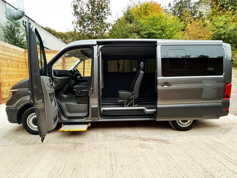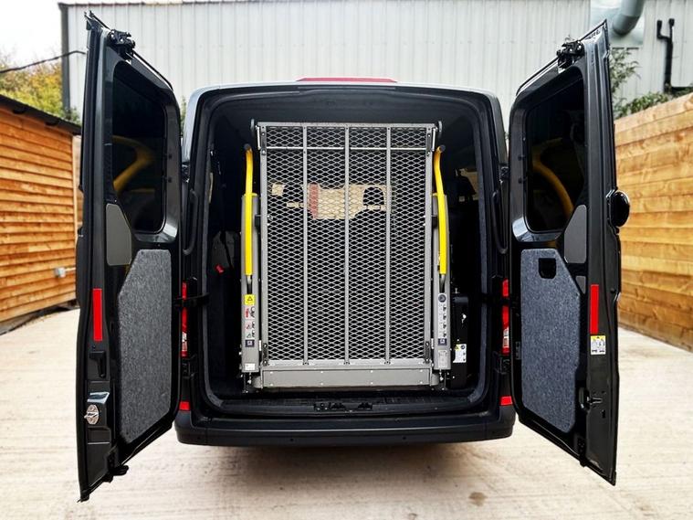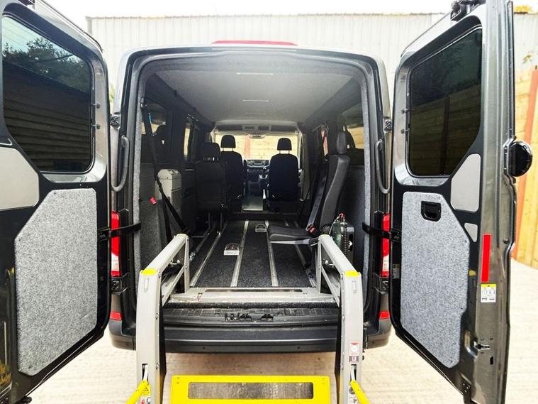 This Brook Miller converted Volkswagen Crafter Wheelchair Accessible Vehicle (WAV) has 4 Seats (2 Front and 2 Rear). Equipment includes Wheelchair Lift, Electric Winch, Air Conditioning, Electric Front Windows, Electric Adjustable Wing Mirrors, Power Steering, Remote Central Locking, Tinted Rear Windows.