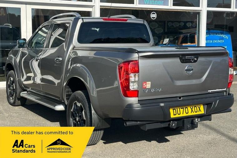 Boasting a full dealership service history and only one previous owner, this 2020 Nissan Navara 2.3 dCi Tekna 4WD Euro 6 (s/s) 4dr presents a compelling proposition. This robust four wheel drive pickup is powered by a 2.3 litre diesel engine and features a generous towing weight of 3500 kg. The Tekna trim level ensures a well equipped interior, complete with heated front seats for comfort, automatic dual zone climate control, and convenient rear parking sensors. For enhanced visibility, it benefits from LED headlights with a distinctive black bezel inlay and dusk sensing technology. With its MOT valid until September 2026 and a clear vehicle history check, this Navara offers peace of mind. This particular Nissan Navara stands out with its impressive fuel economy, achieving up to 40 miles per gallon, and its low CO2 emissions, indicating a more environmentally conscious choice compared to many similar vehicles. The inclusion of a 3 month warranty further enhances its appeal, providing an added layer of security for the new owner. The last service was completed on 22 August 2025 at 54051 miles, demonstrating consistent maintenance. ========= Specification: 18in Alloy Wheels 360 Around View Monitor 8in Touchscreen + Nissan Connect Navigation Automatic AC Dual Zone Heated Front Seats Push Button Engine Start LED Headlights with Black Bezel Inlay LED Daytime Running Lights Cruise Control with Speed Limiter Electronic Limited Slip Differential (eLSD) Hill Descent Control + Hill Start Assist Rear Parking Sensors + Rear View Camera Silver Roof Rails & Side Steps Towbar with Electrics Lock and Roll Bed Cover ========= Service History: 21/07/2021 - 11, 601 miles - Nissan 25/08/2022 - 22, 021 miles - Nissan 24/08/2023 - 32, 500 miles - Nissan 21/08/2024 - 41, 999 miles - Nissan 22/08/2025 - 54, 051 miles - Nissan. =========